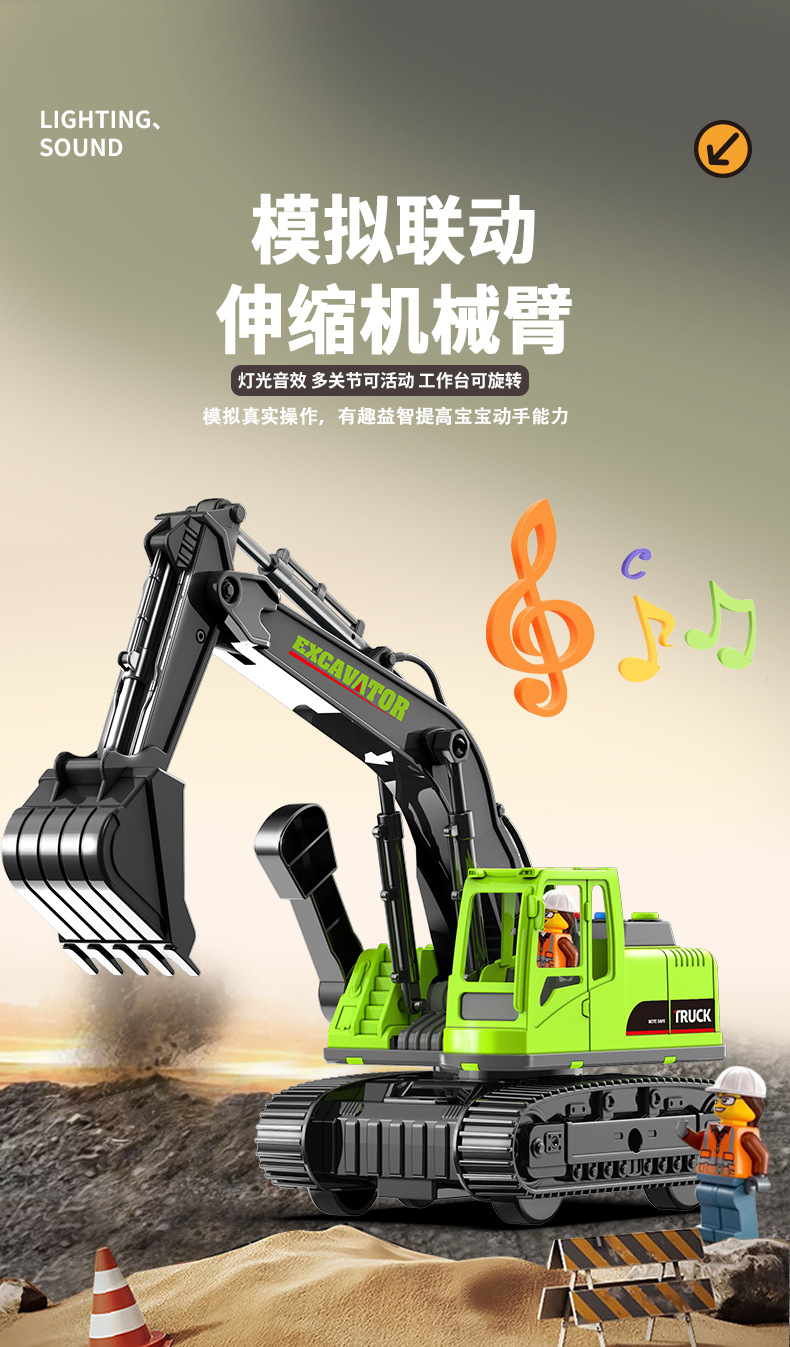 어린이 대형 크레인 굴삭기 빛과 음악 장난감 자동차 크레인 엔지니어링 차량 소년 모델 시뮬레이션 관성