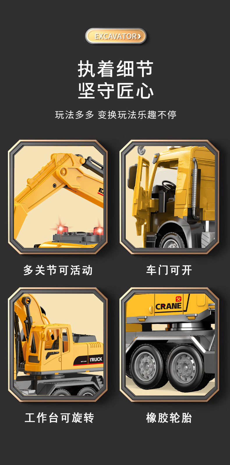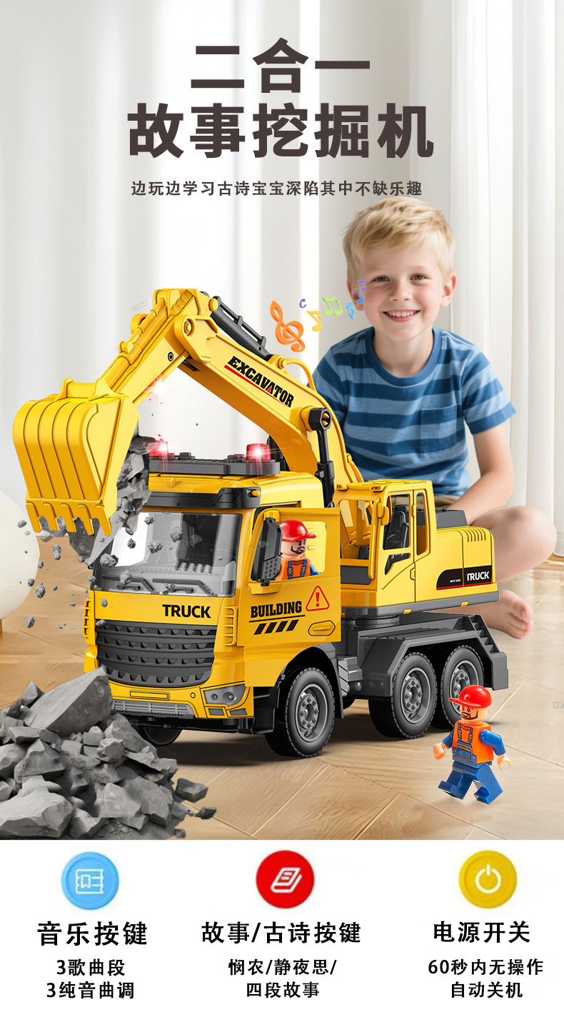 어린이 대형 크레인 굴삭기 빛과 음악 장난감 자동차 크레인 엔지니어링 차량 소년 모델 시뮬레이션 관성스토어 가기