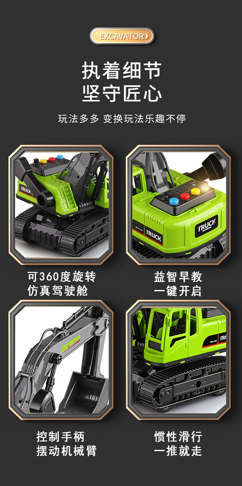 • 대형 수동 굴삭기 - 녹색 [빛과 음악] 무료 시뮬레이션 스톤 10개 + 드라이버 2명