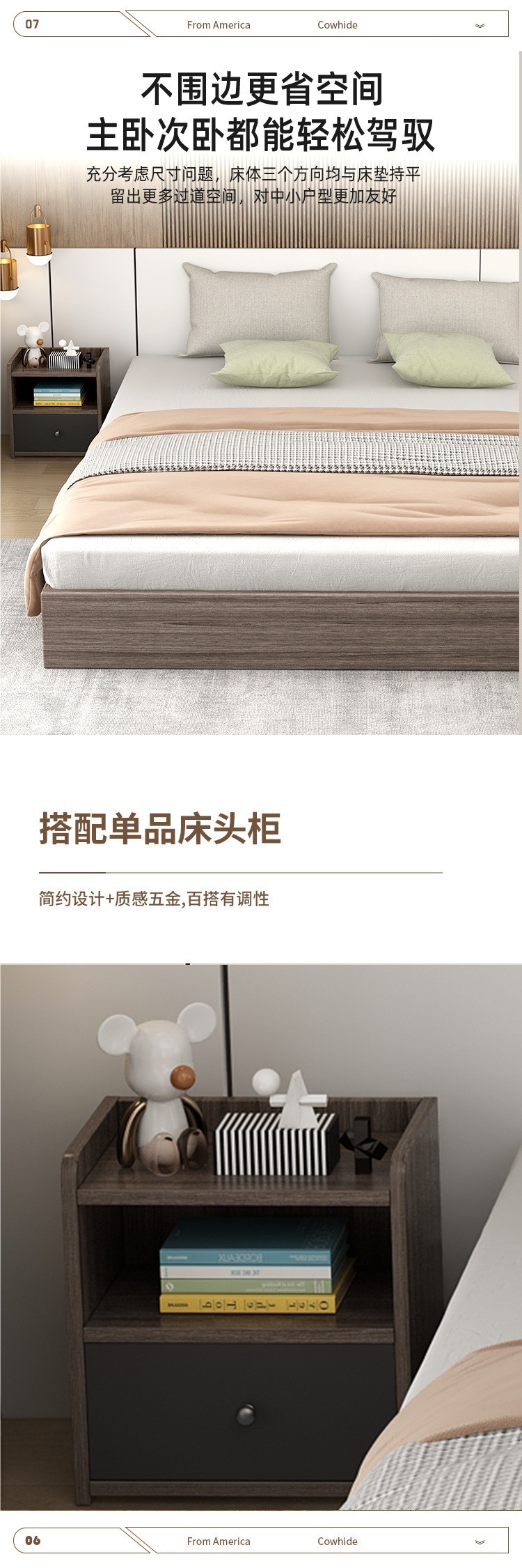 • 크로스보더 싱글 침대 + 침대 옆 테이블*1 [회색 바닥 모델]