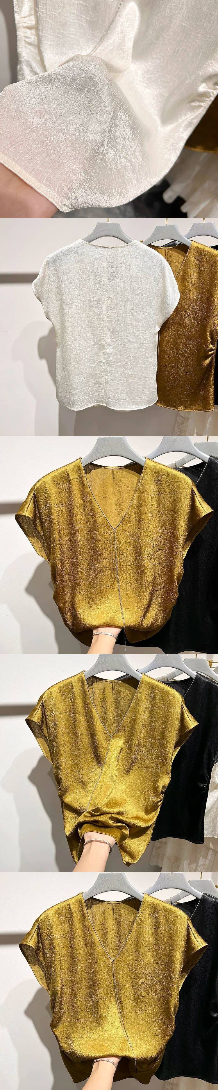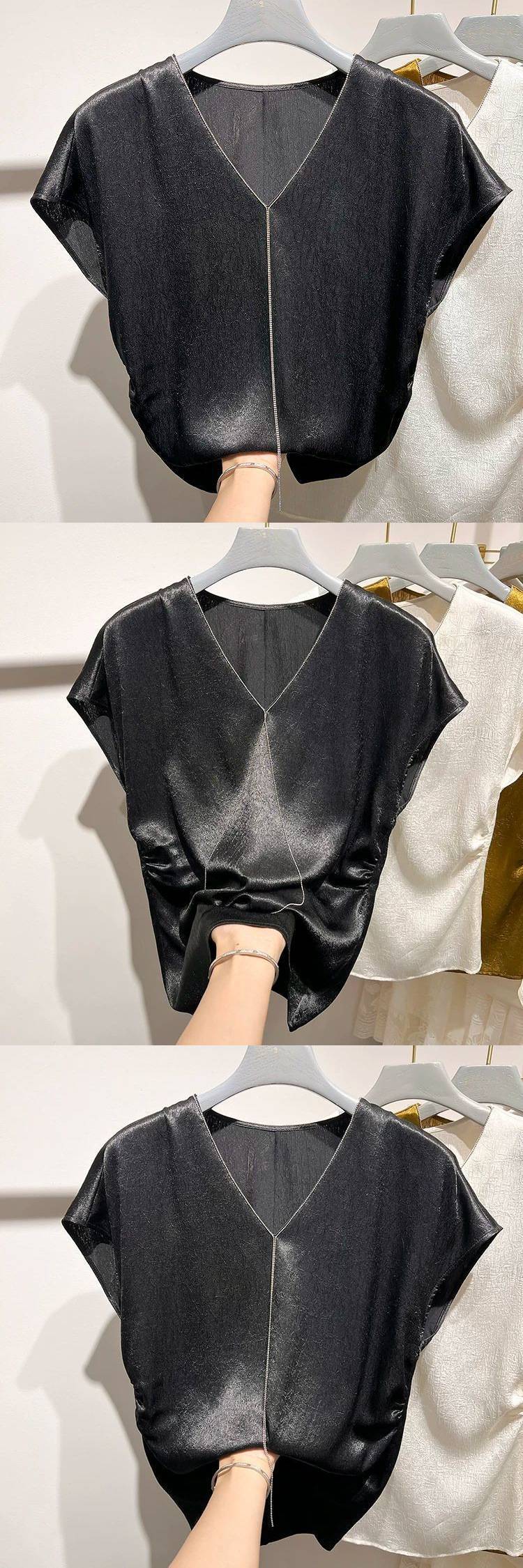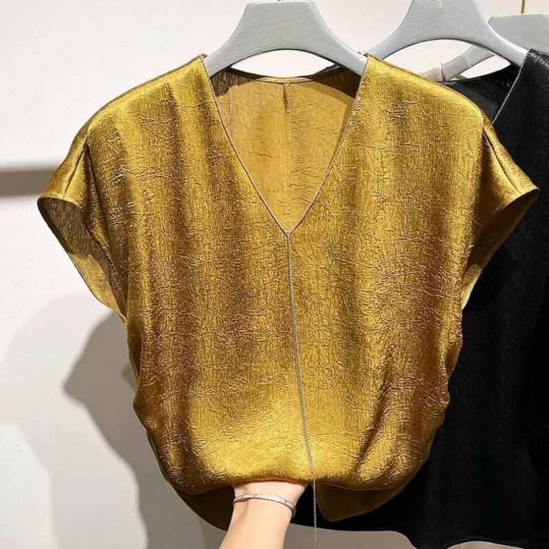 2025 새로운 스타일 슬림 칼라 순수 꽃가루 쉬폰 셔츠 여성 통근 얇은 탑 우아한 옷장 필수품스토어 가기