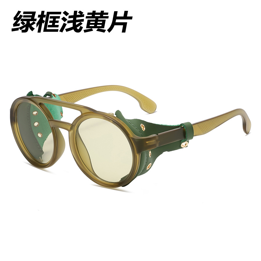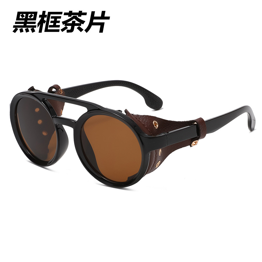 유럽과 미국의 Steampunk 라운드 방풍 선글라스 남자 복고풍 가죽 선글라스 인터넷 연예인 오토바이 타고 방진 안경스토어 가기