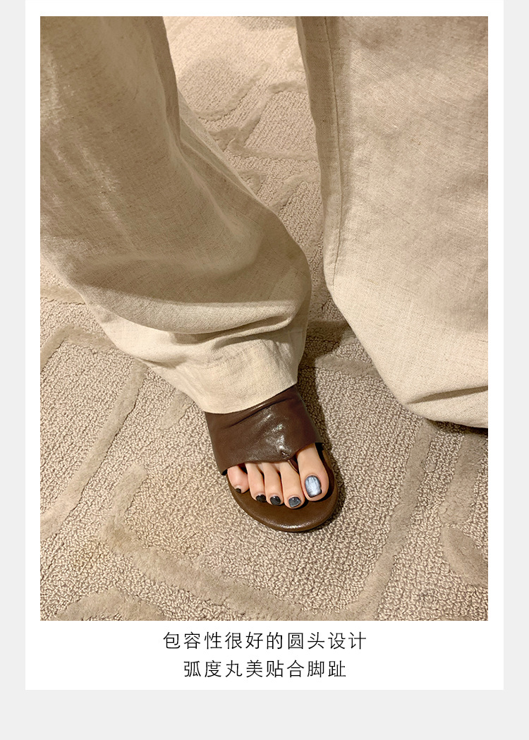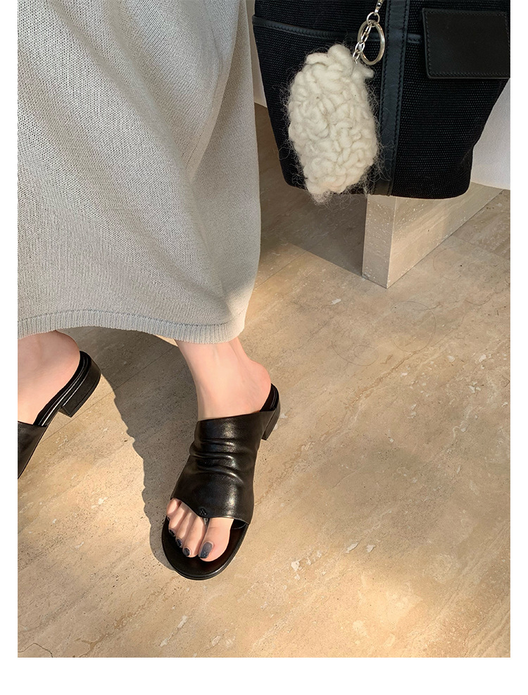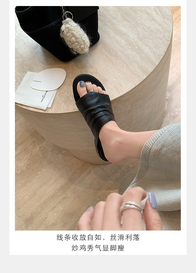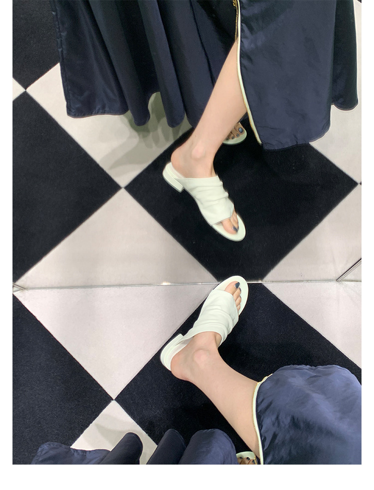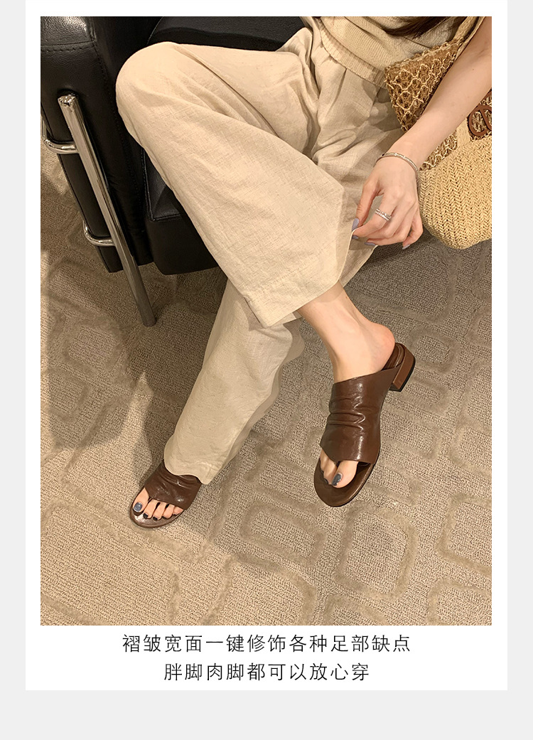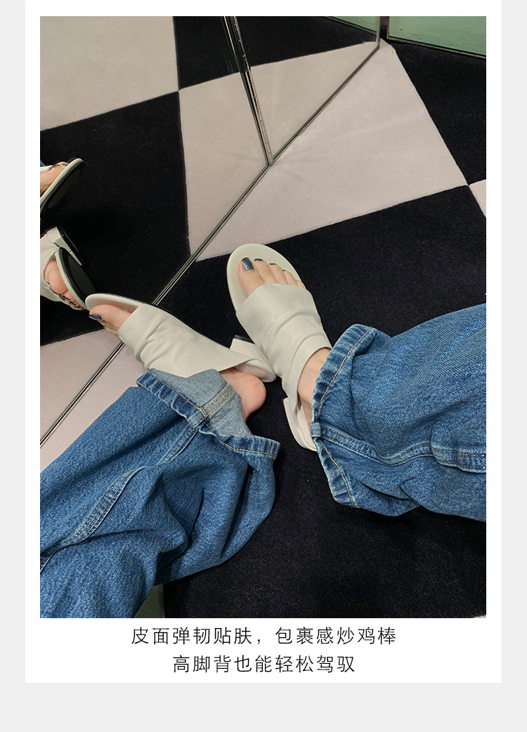 포도엄마와 같은 스타일이 입고되었습니다~ 미니멀리스트 올드머니 스타일 와이드 어퍼 소가죽 주름 여성 여름용 다용도 두꺼운 굽 샌들
