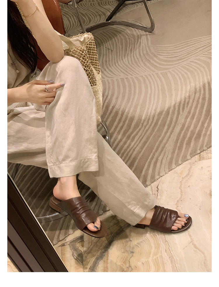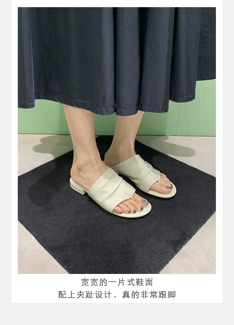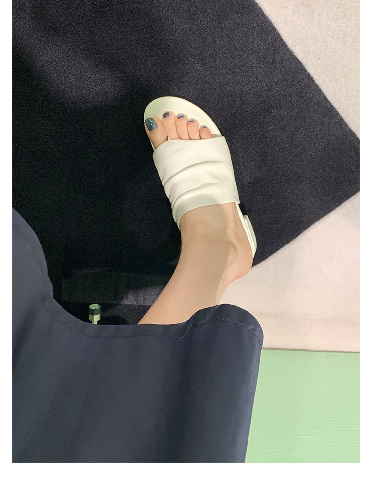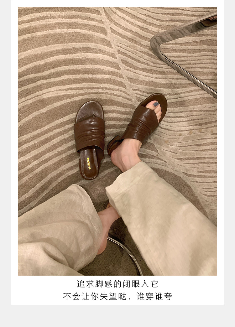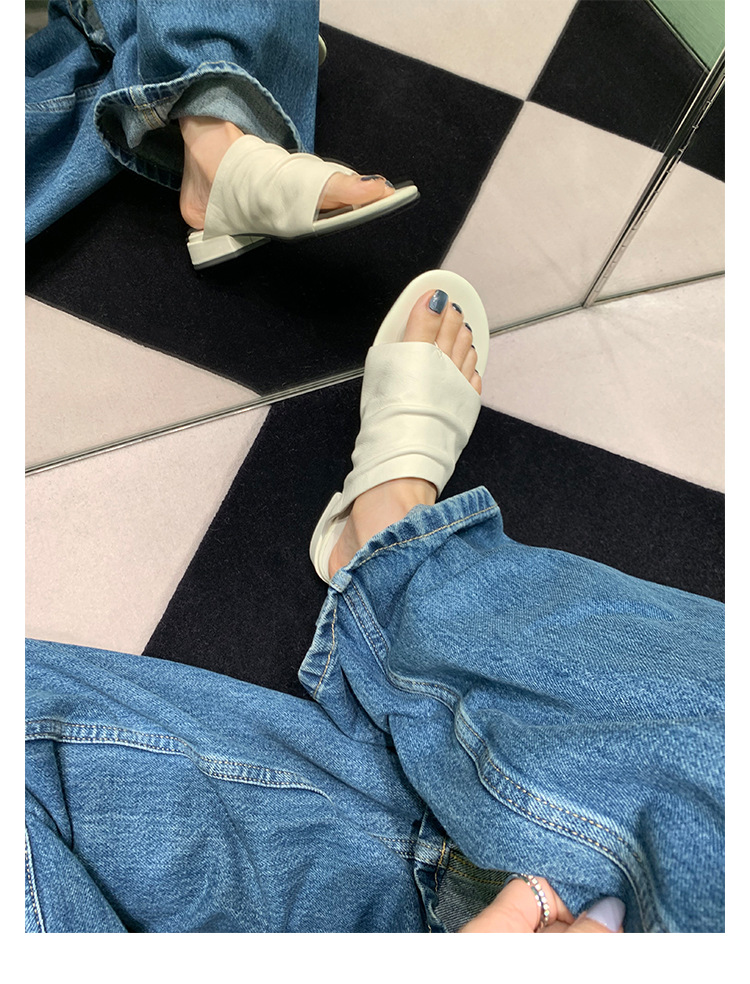 포도엄마와 같은 스타일이 입고되었습니다~ 미니멀리스트 올드머니 스타일 와이드 어퍼 소가죽 주름 여성 여름용 다용도 두꺼운 굽 샌들
