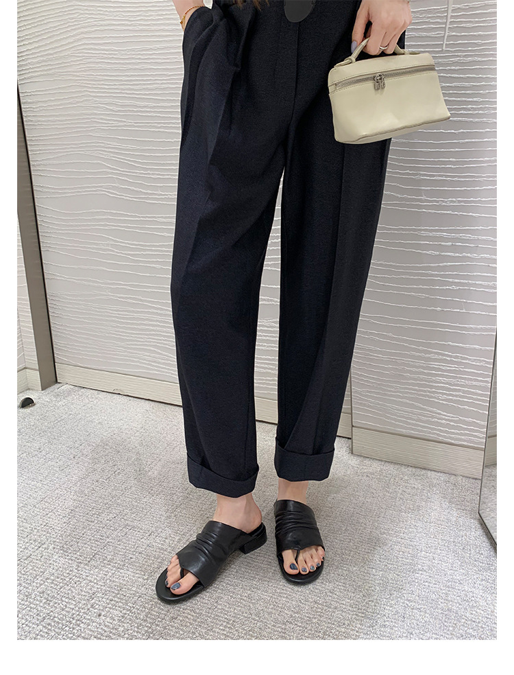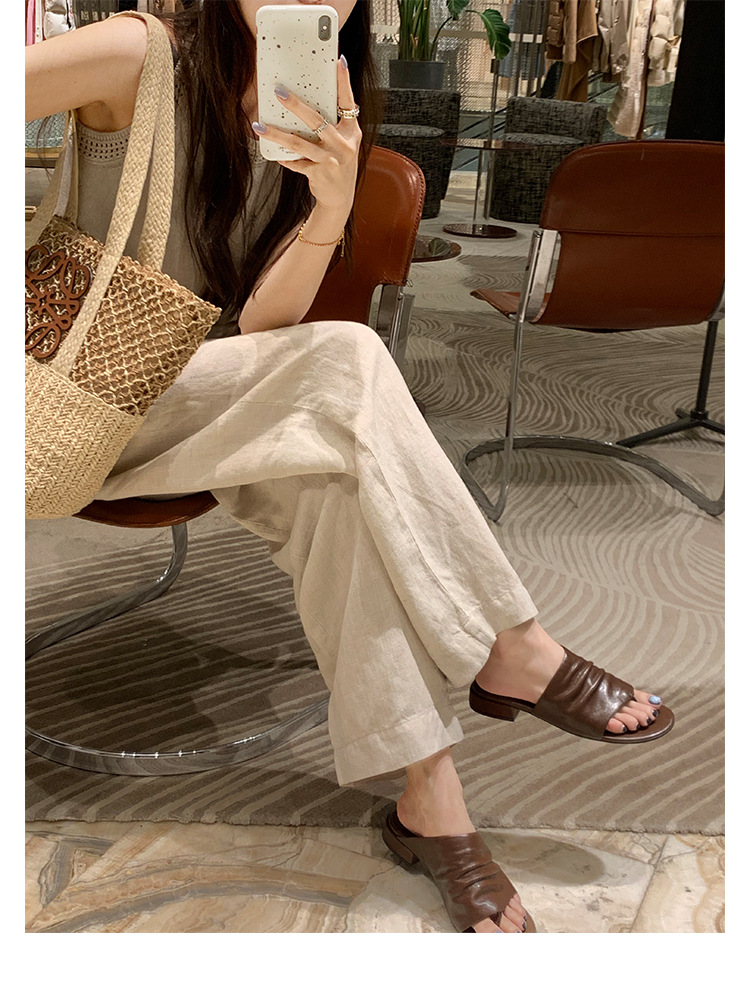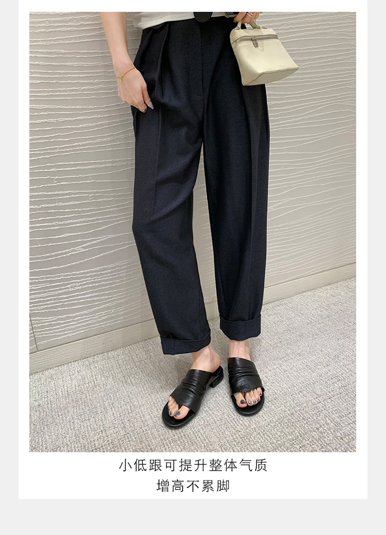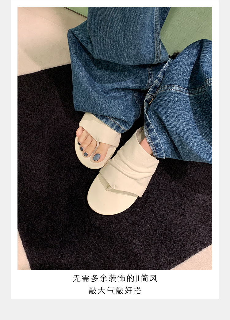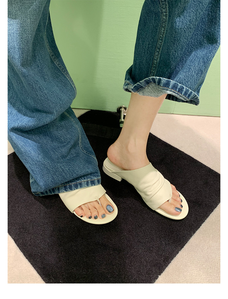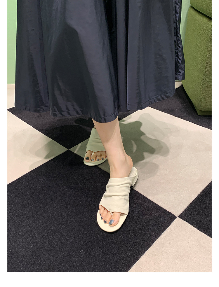 포도엄마와 같은 스타일이 입고되었습니다~ 미니멀리스트 올드머니 스타일 와이드 어퍼 소가죽 주름 여성 여름용 다용도 두꺼운 굽 샌들