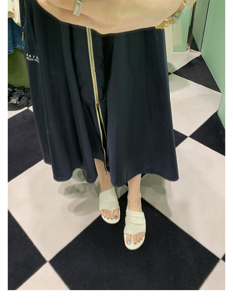 포도엄마와 같은 스타일이 입고되었습니다~ 미니멀리스트 올드머니 스타일 와이드 어퍼 소가죽 주름 여성 여름용 다용도 두꺼운 굽 샌들스토어 가기