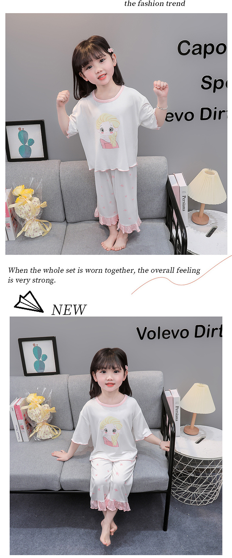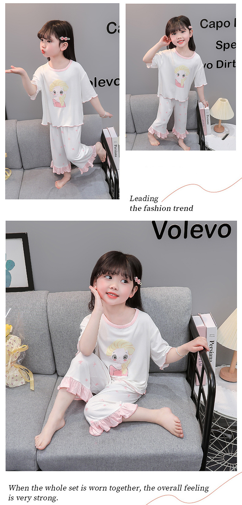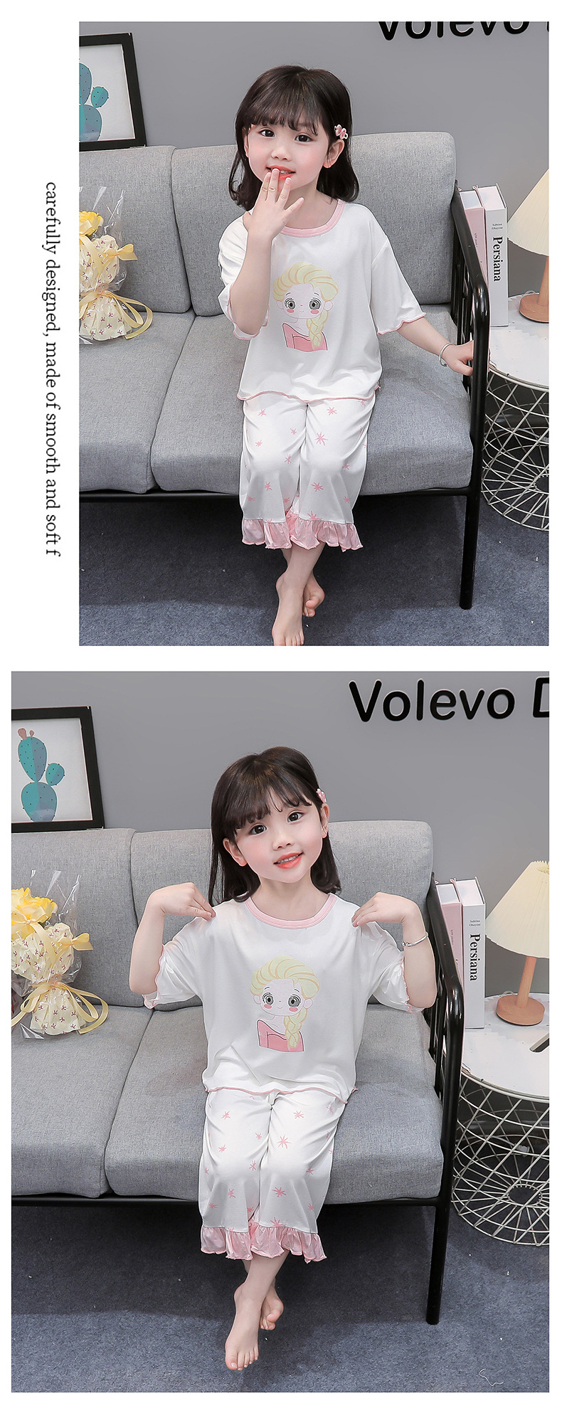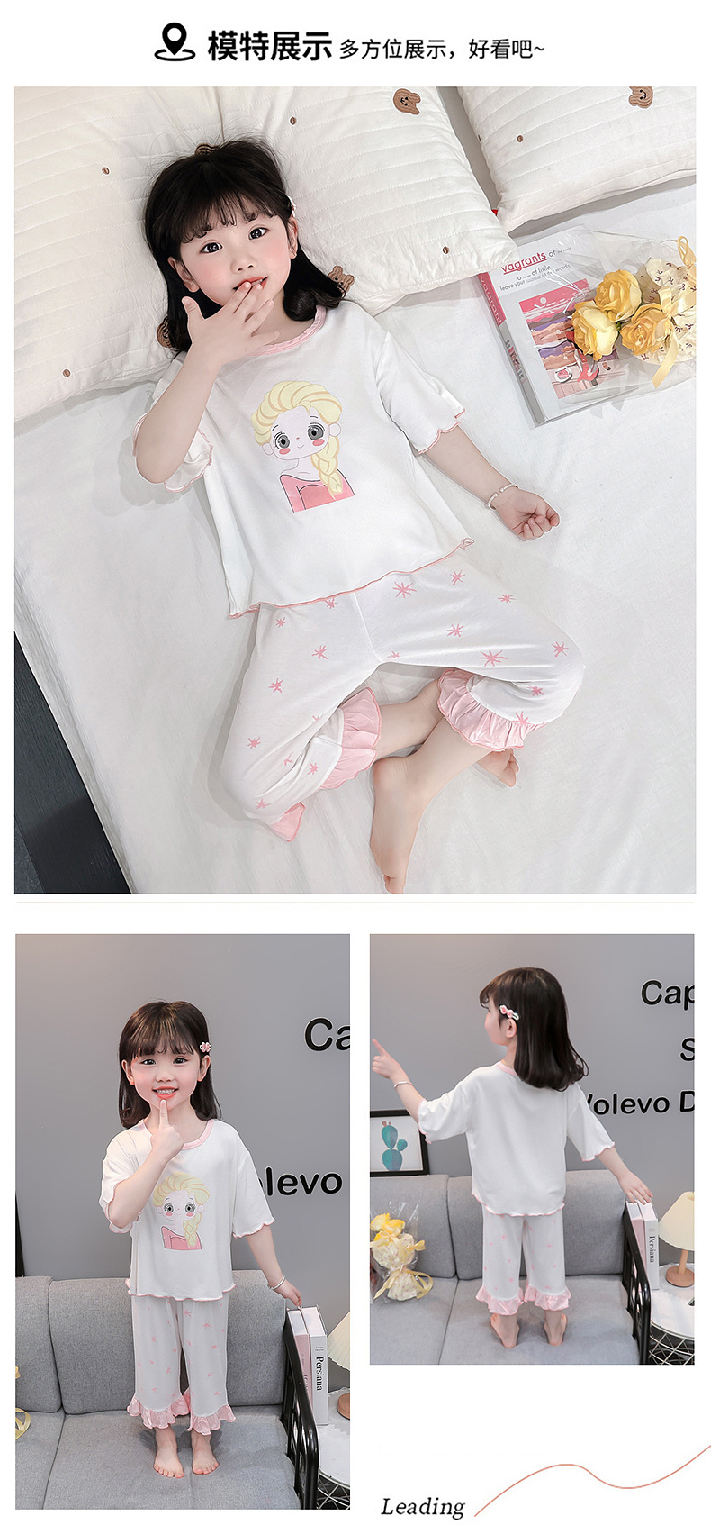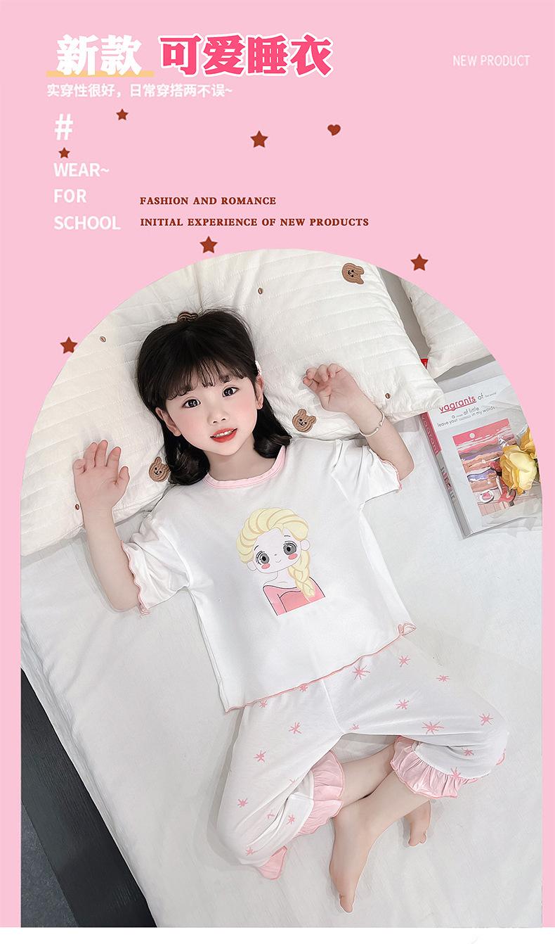 여아 반팔 작은 공주 만화 캐릭터 세트 홈웨어 2026년 신상 아동 잠옷 투피스 세트 봄 여름 얇은 스타일스토어 가기