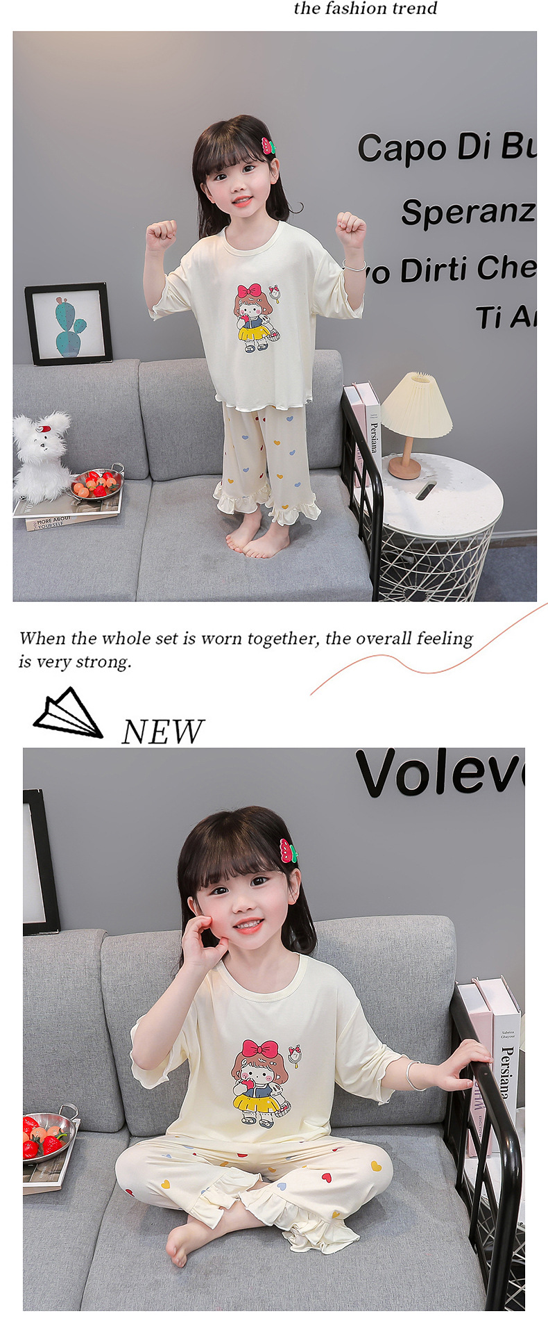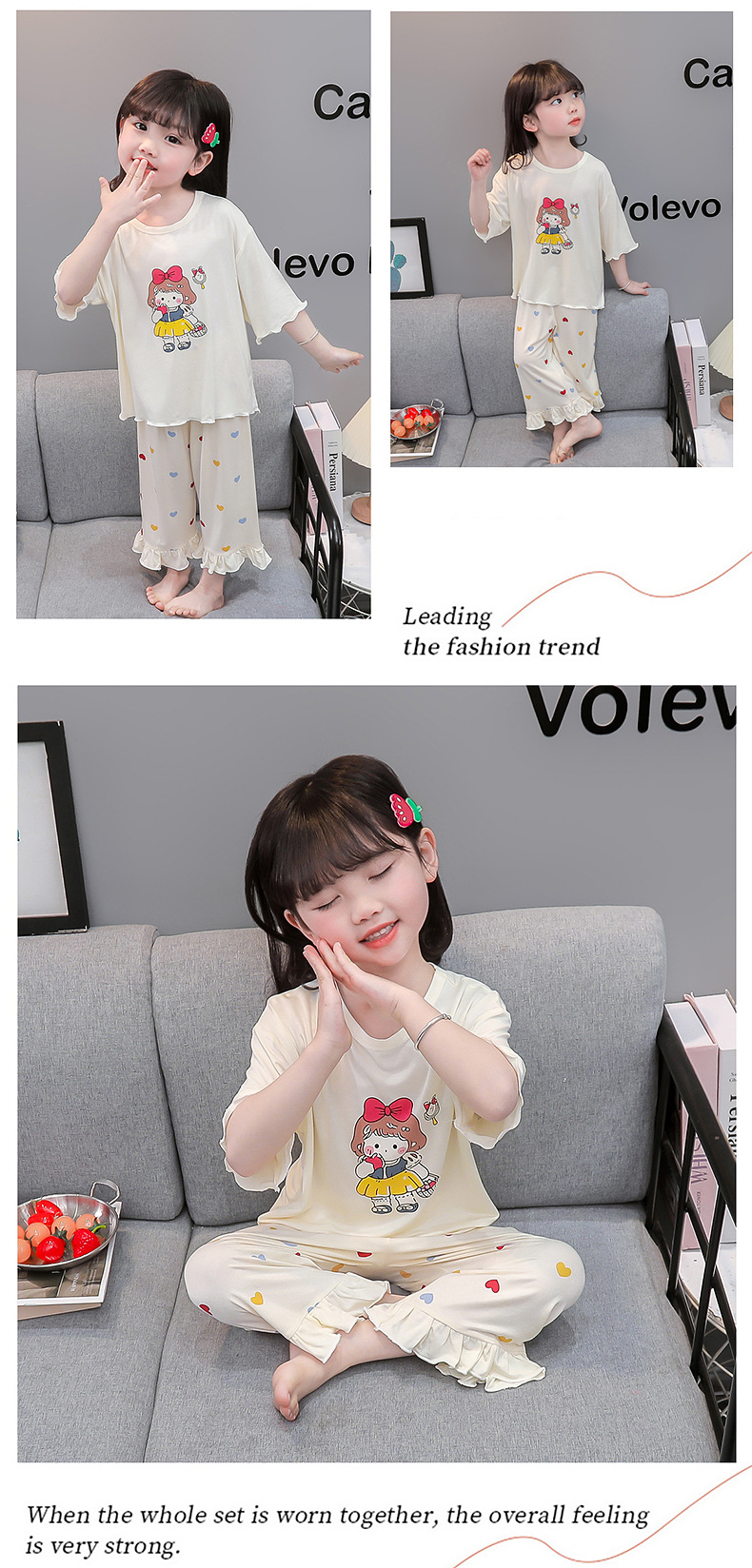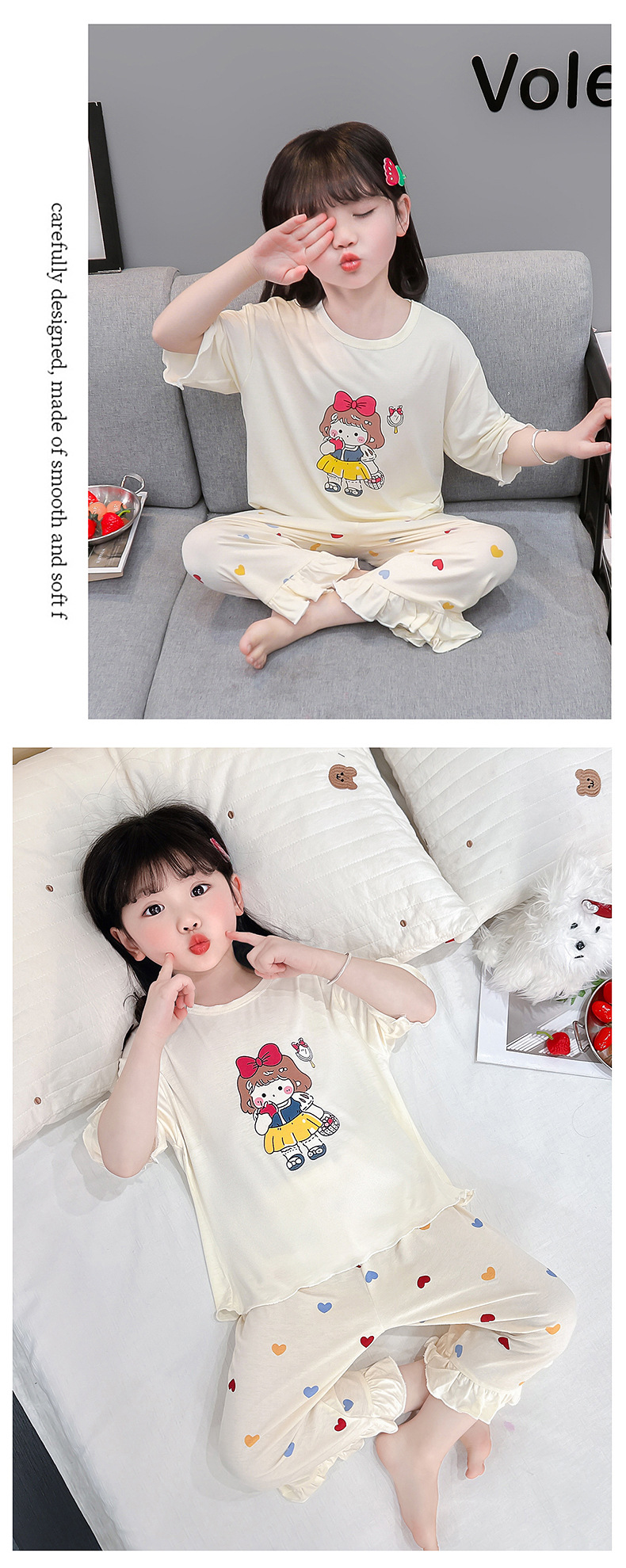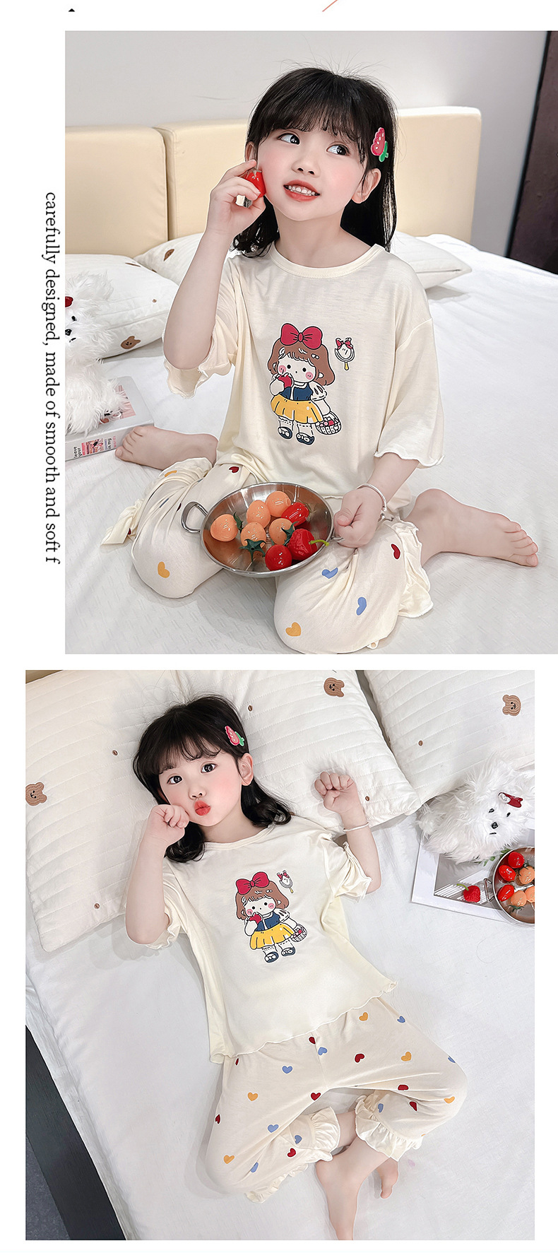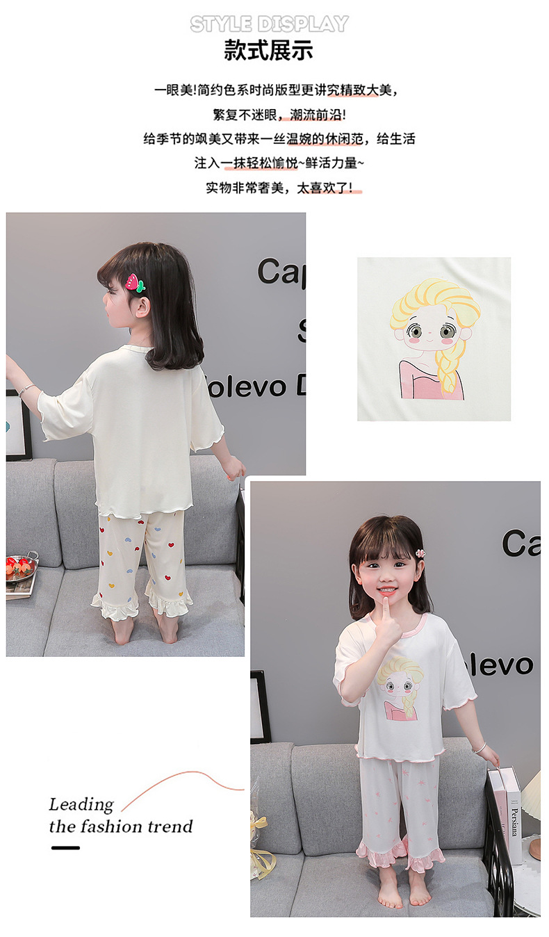 여아 반팔 작은 공주 만화 캐릭터 세트 홈웨어 2026년 신상 아동 잠옷 투피스 세트 봄 여름 얇은 스타일스토어 가기
