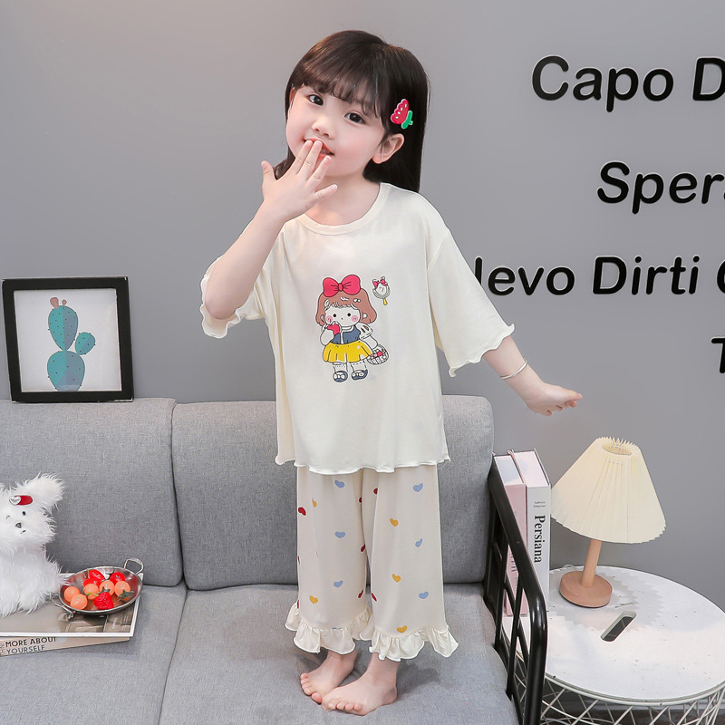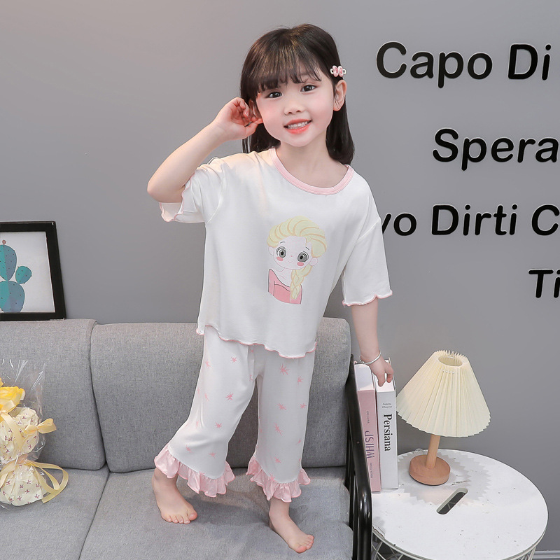 여아 반팔 작은 공주 만화 캐릭터 세트 홈웨어 2026년 신상 아동 잠옷 투피스 세트 봄 여름 얇은 스타일