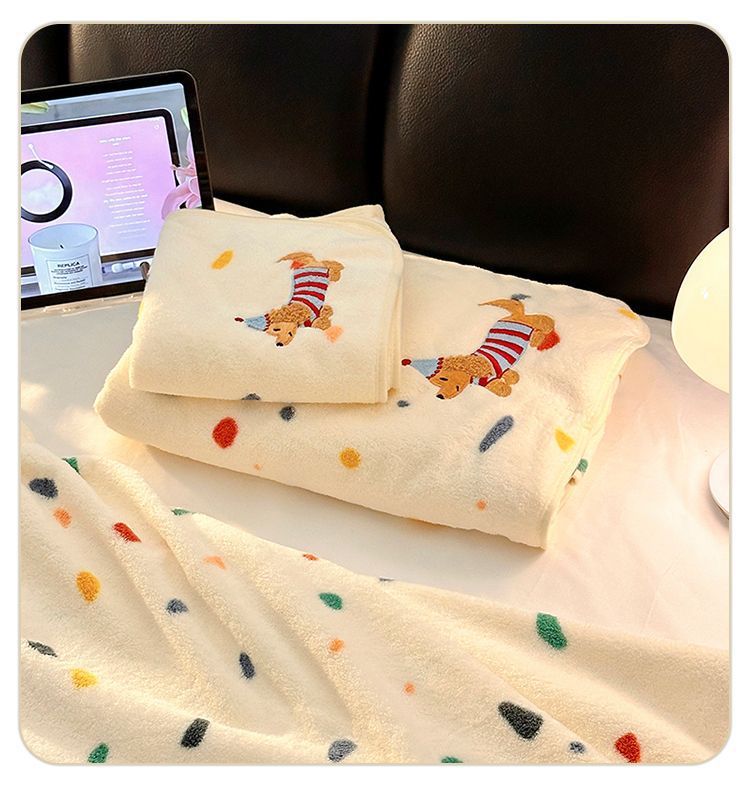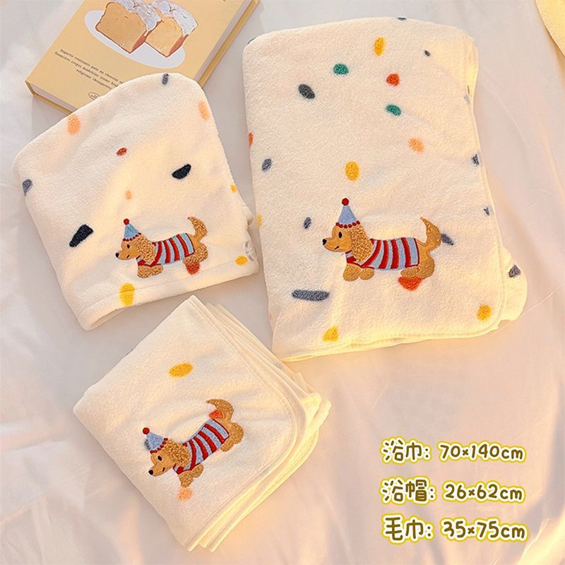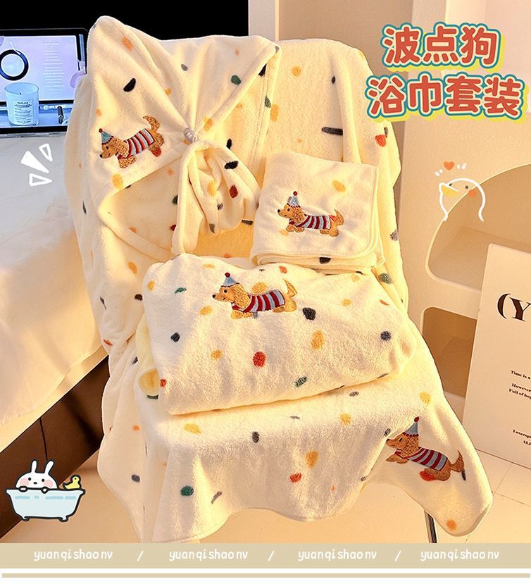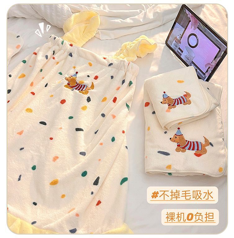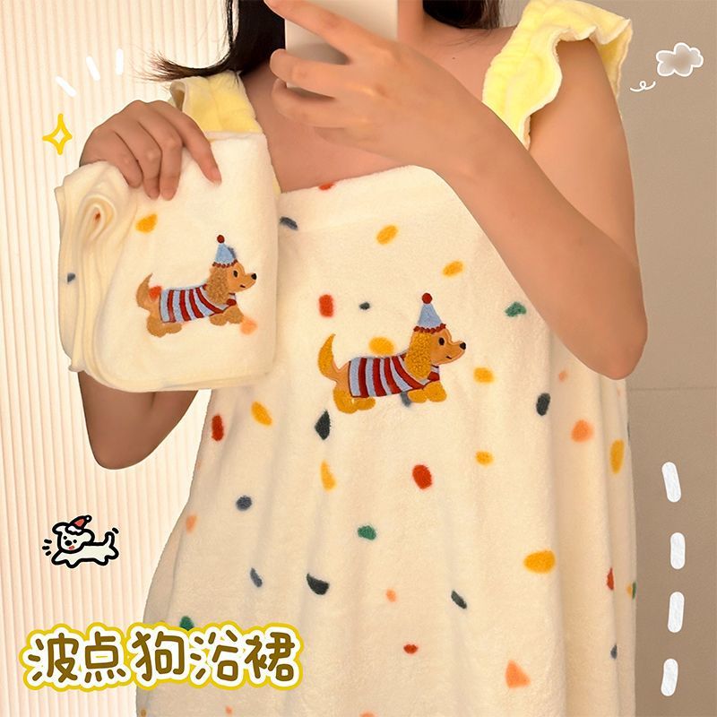 귀여운 폴카 도트 개 목욕 스커트 산호 벨벳 피부 친화적 인 흡수성 속건성 목욕 타월 홈 성인 커플 목욕 타월 세트스토어 가기