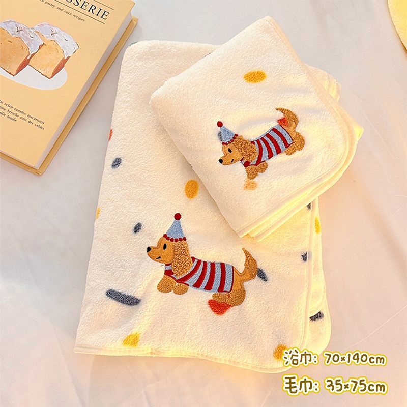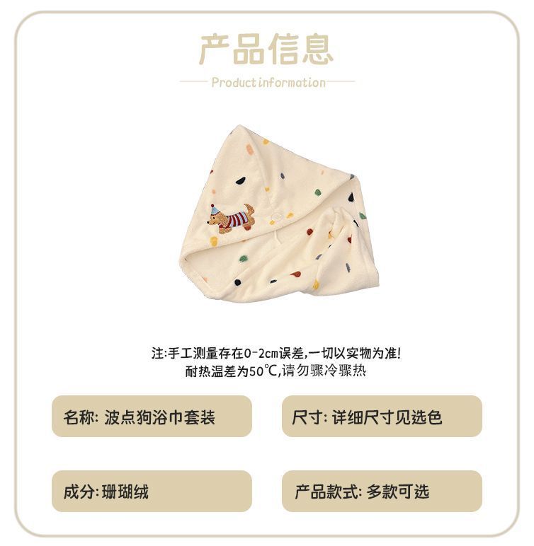 귀여운 폴카 도트 개 목욕 스커트 산호 벨벳 피부 친화적 인 흡수성 속건성 목욕 타월 홈 성인 커플 목욕 타월 세트