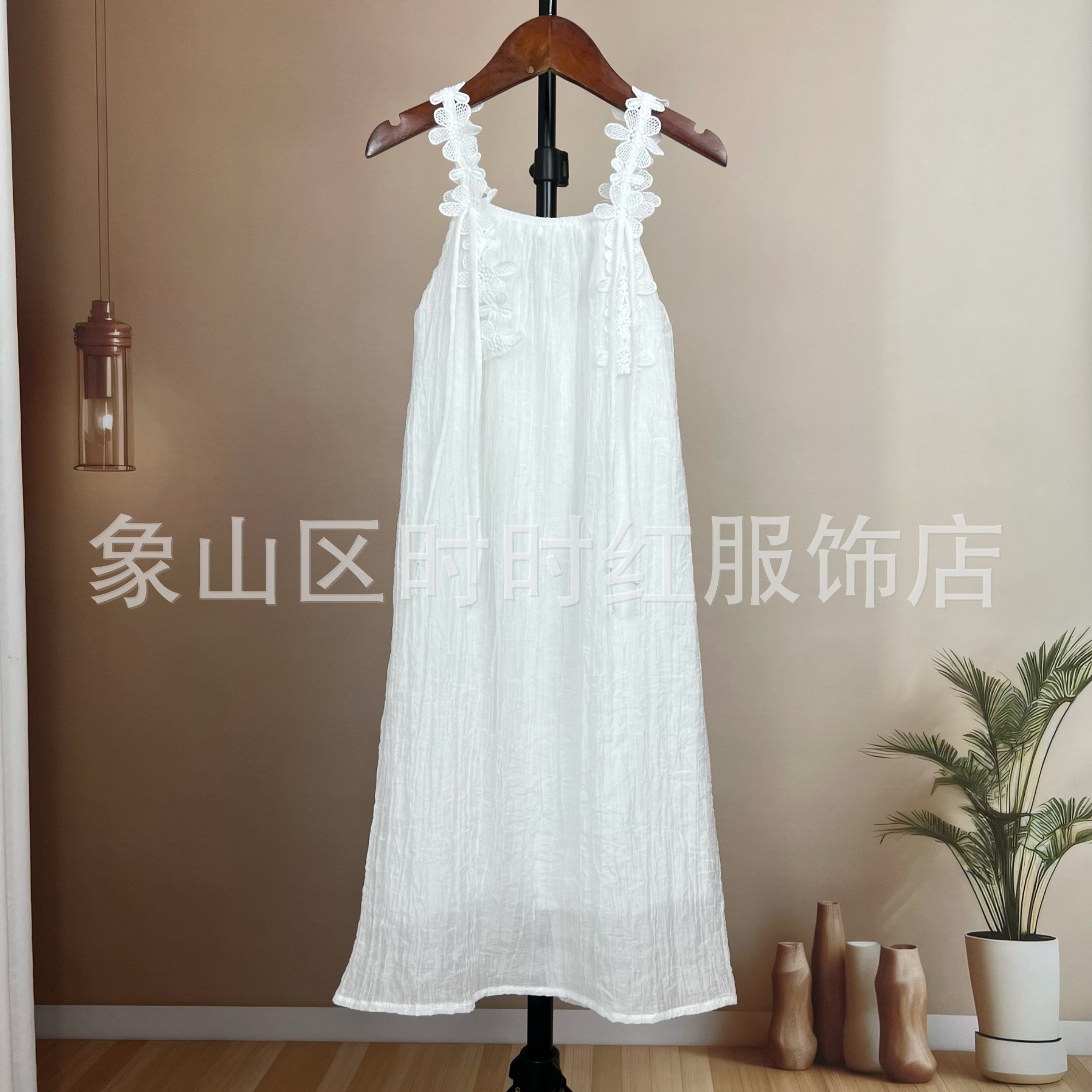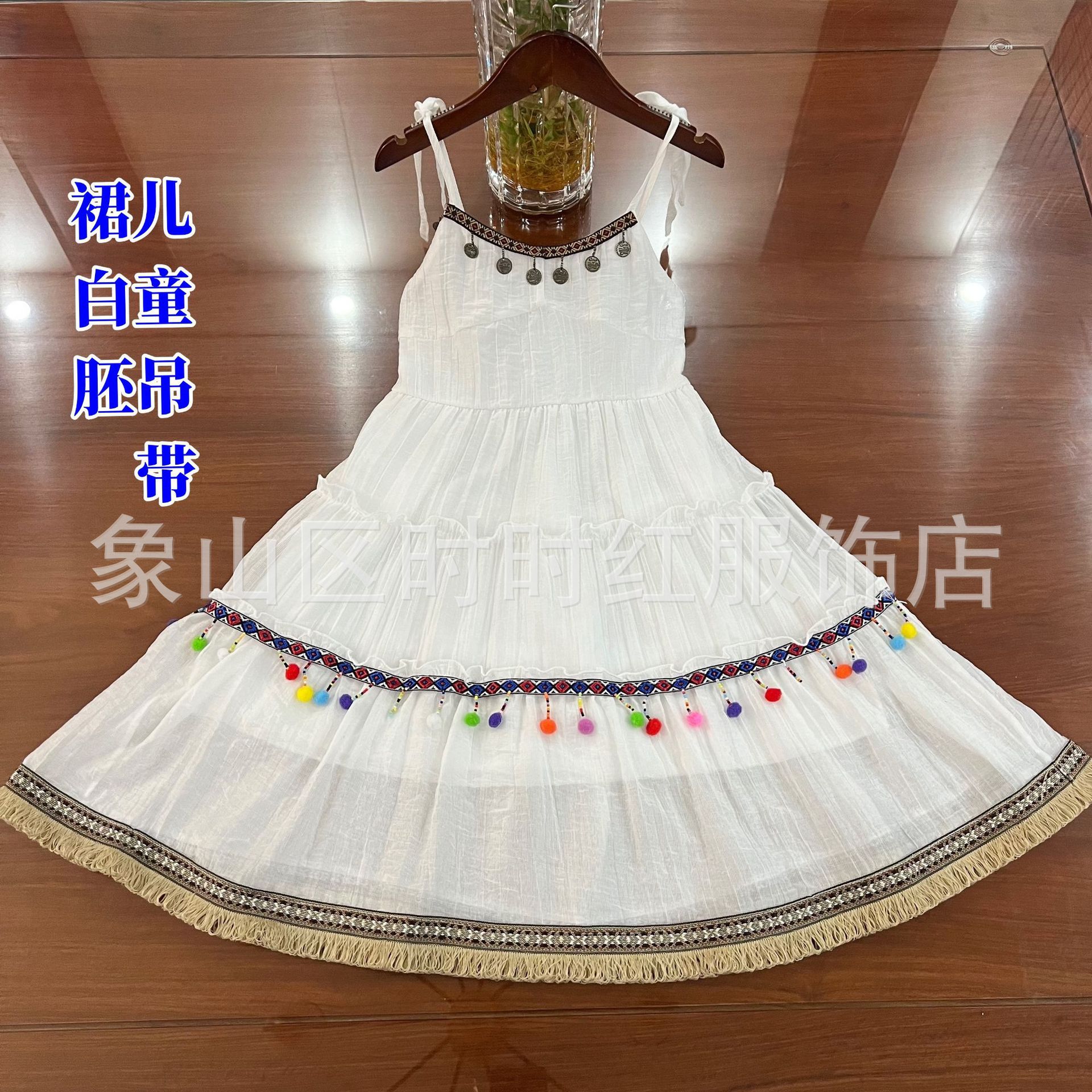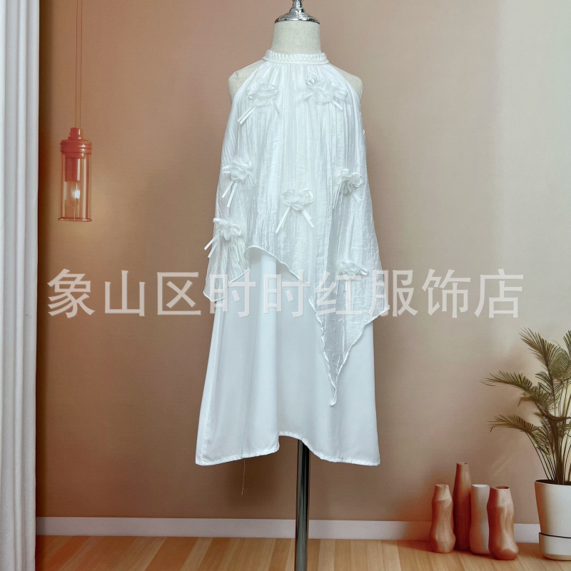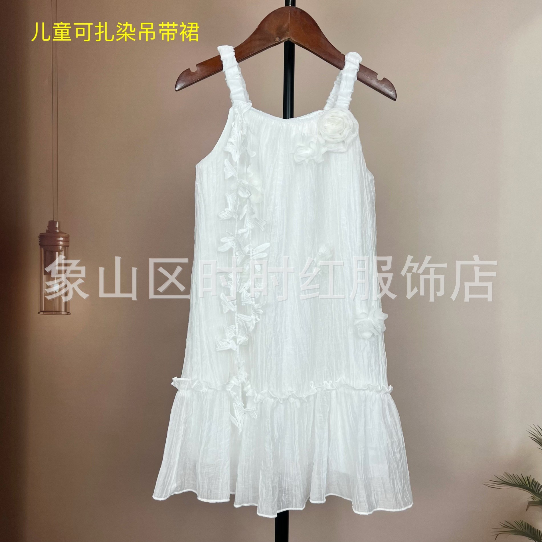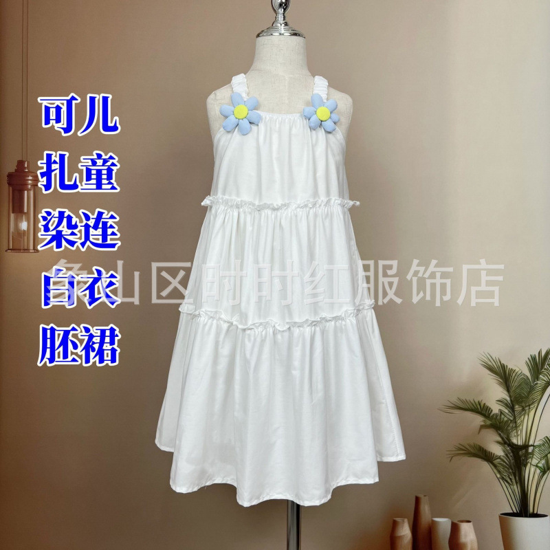 흰색 배아 달콤한 소녀의 휴가 문학 서스펜더 스커트 러플 입체 꽃 드레스는 화이트 스커트로 타이다이할 수 있습니다스토어 가기