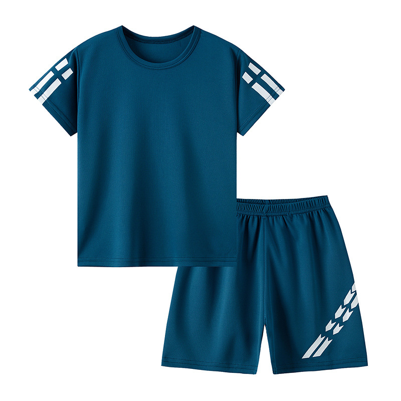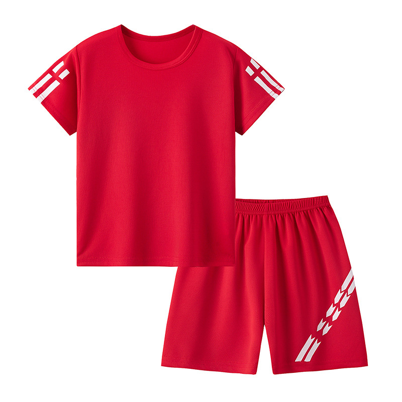해외 국경 간 플랫폼 여름 어린이 단색 속건 스포츠 및 레저 정장 소년 소녀 반팔 티셔츠 대형