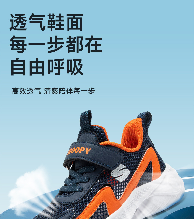 스누피 어린이 운동화 2025 새로운 여름 어린이 신발 단일 메쉬 통기성 경량 운동화 소년 신발