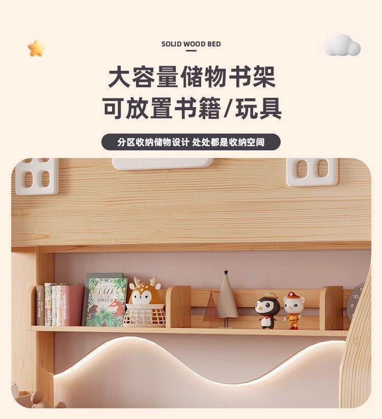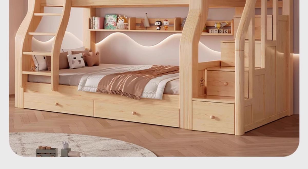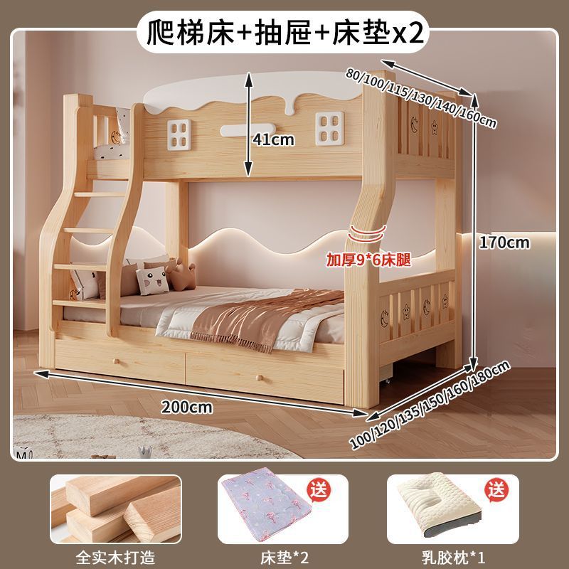 어린이 단단한 나무 이층 침대 다기능 어린이 침대 이층 침대 작은 아파트 2층