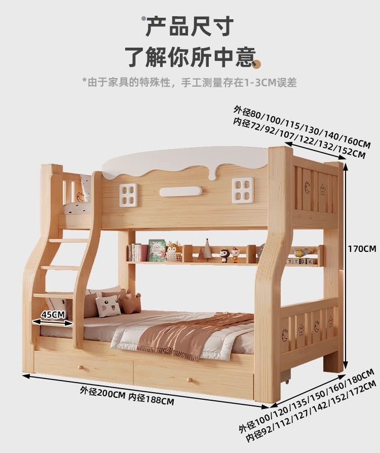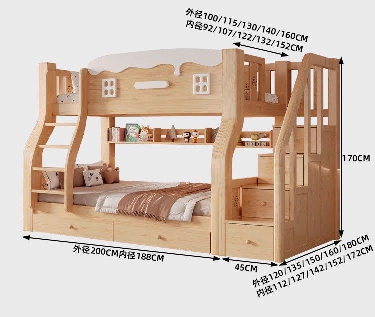• 크림하우스 사다리장 침대 + 매트리스 x2 + 책장 + 서랍장 丨위층 포함.