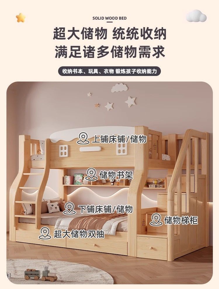 어린이 단단한 나무 이층 침대 다기능 어린이 침대 이층 침대 작은 아파트 2층스토어 가기