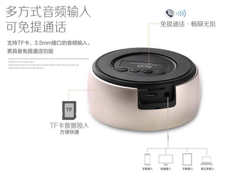 체스 소형 강철 총 스피커 새로운 휴대용 금속 서브 우퍼 블루투스 스피커 소형 오디오 카드 TWS 오디오