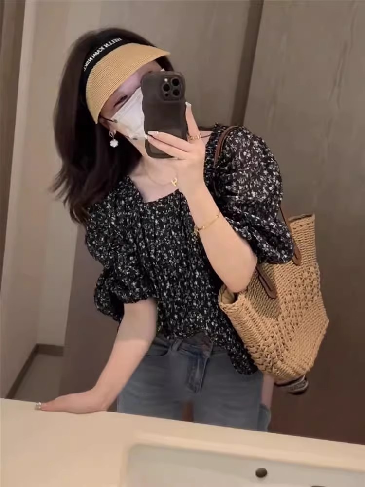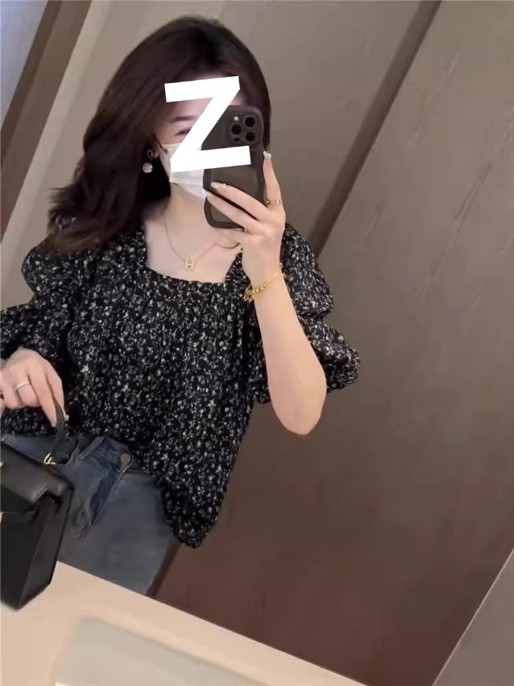 [오리지널 워크맨십] 꽃무늬 루즈 배 커버 쉬폰 셔츠 2025 여성 반팔 스타일 연령 감소 프렌치 시크 스타일스토어 가기