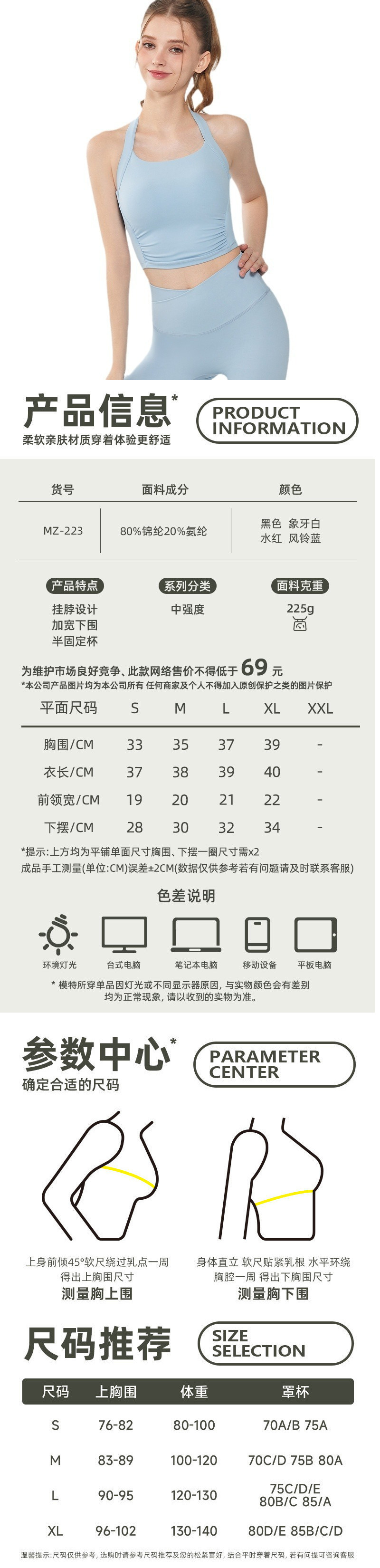 여성을 위한 고강도 충격 방지 스포츠 브라, 새로운 홀터넥 고정 컵 요가 조끼, 다용도 아름다운 등 피트니스 브라