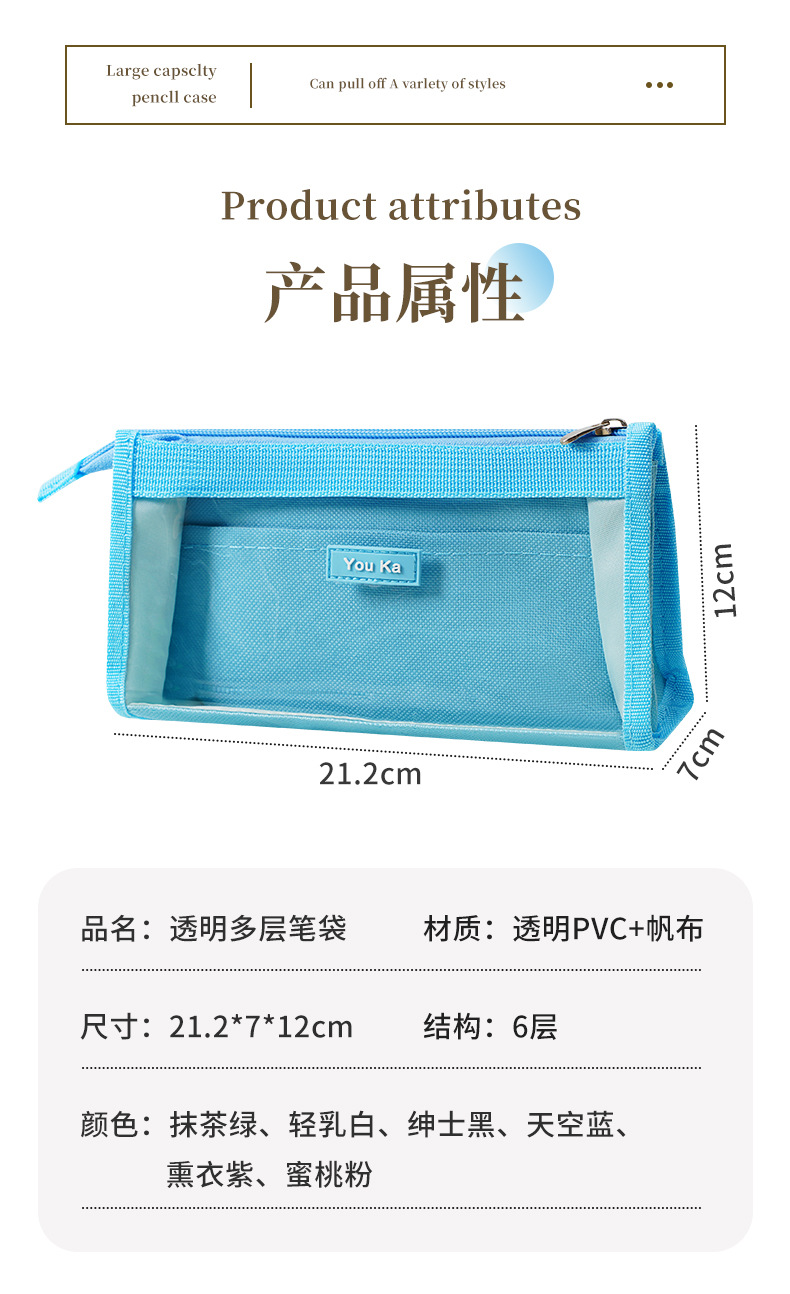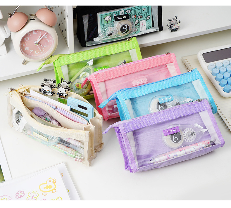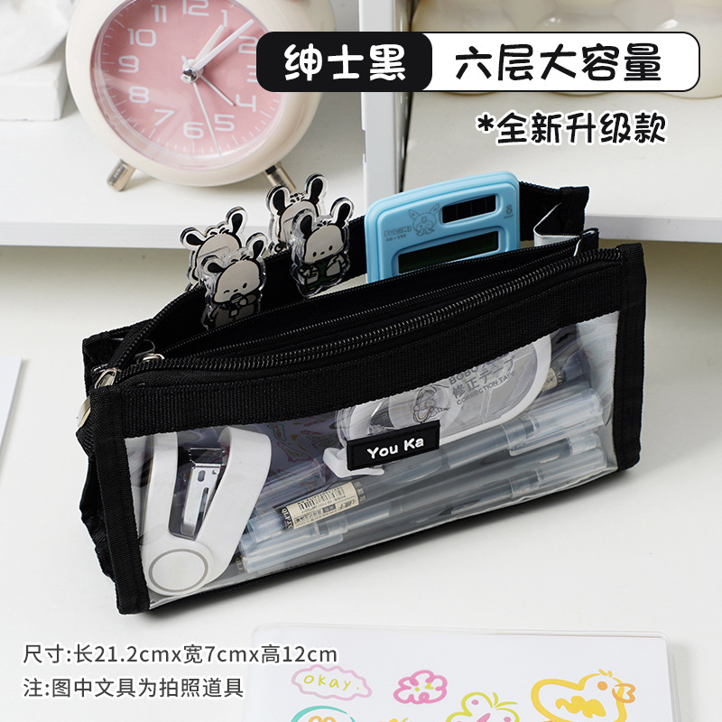 대용량 신형 투명 연필 가방 문구 상자 중학생 고등학교 연필 상자 소년 소녀 문구 가방 고급스러운 외관