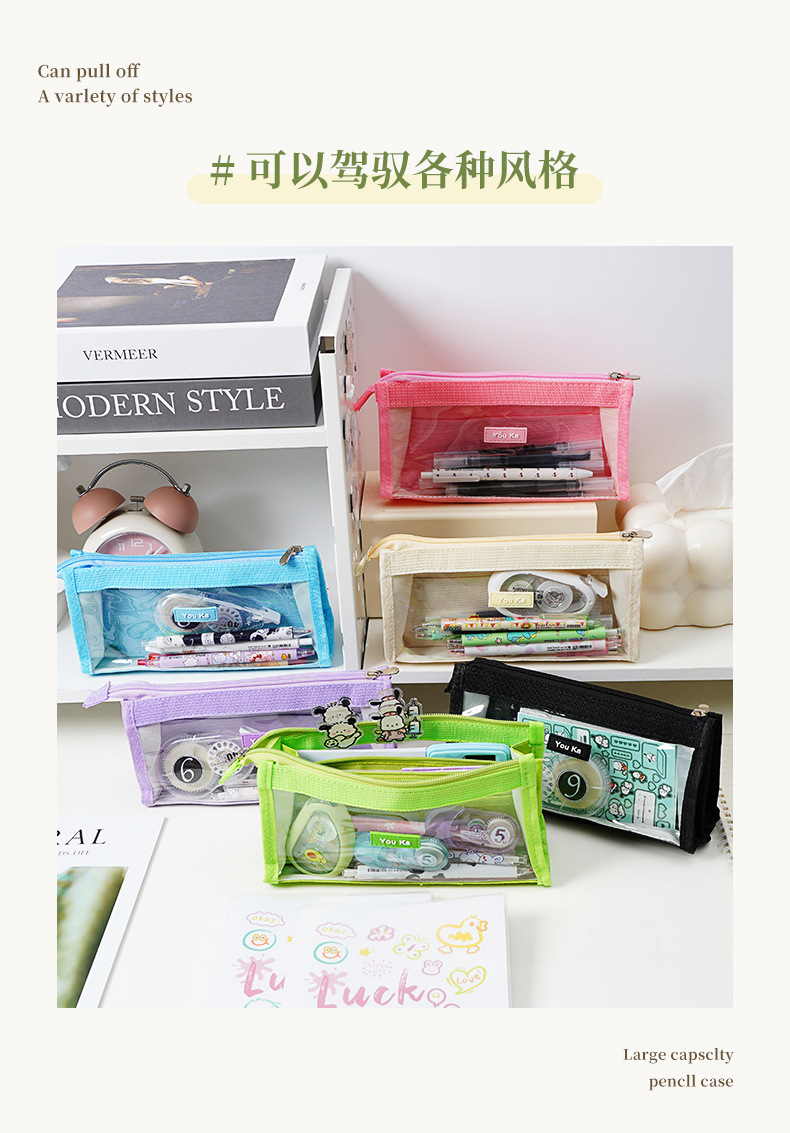 대용량 신형 투명 연필 가방 문구 상자 중학생 고등학교 연필 상자 소년 소녀 문구 가방 고급스러운 외관스토어 가기