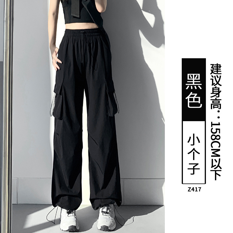 여름용 여성용 낙하산 속건 작업복 얇은 루즈한 와이드 레그 낙하산 충전 바지 인터넷 연예인 아이스 실크 스포츠 바지