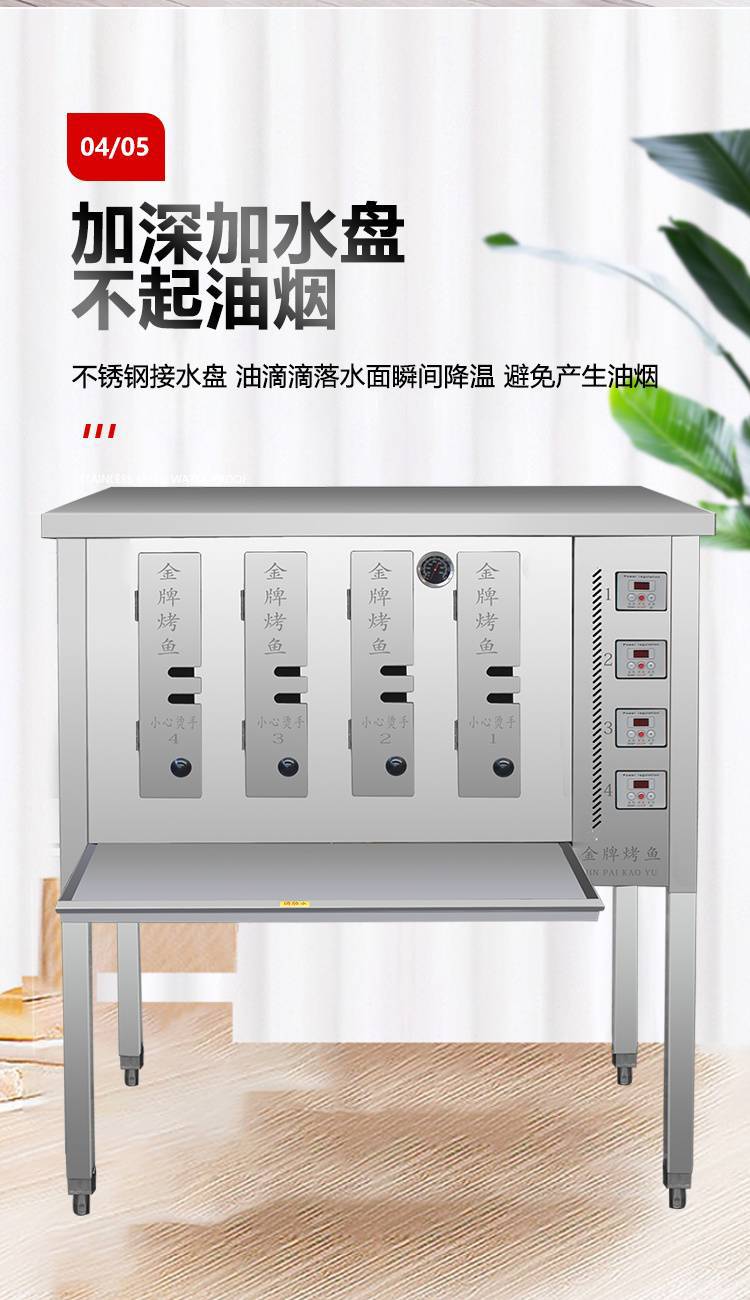 가스 생선 구이 오븐 상업용 완전 자동 무연 생선 구이 기계 가스 액화 가스 전기 스테인레스 스틸 생선 구이 상자 숯불 그릴