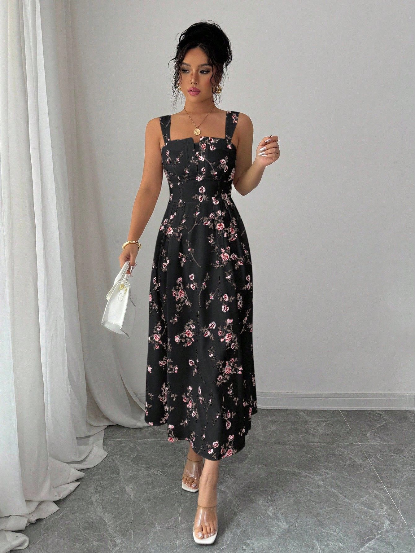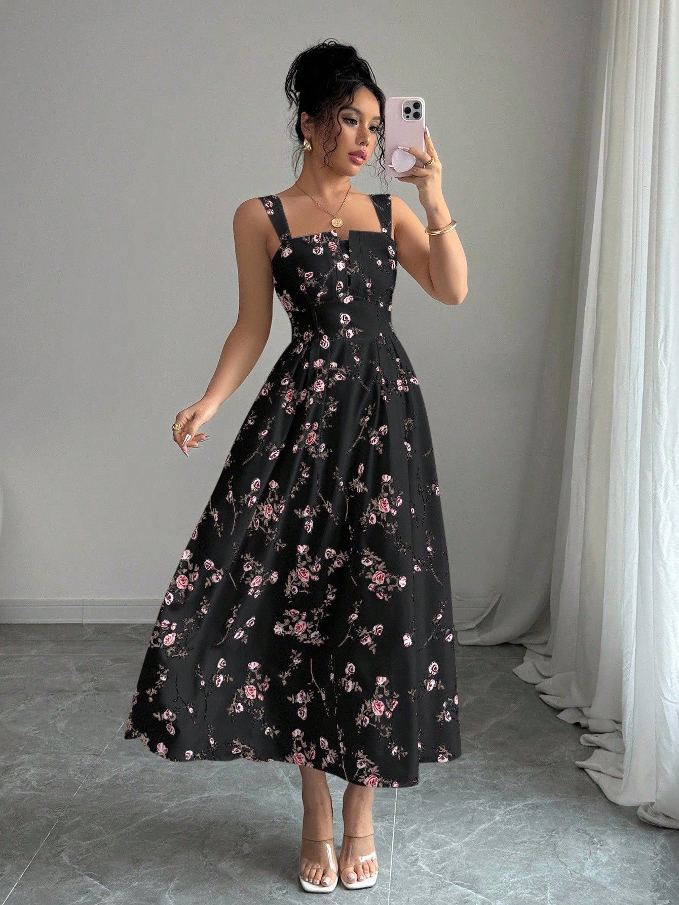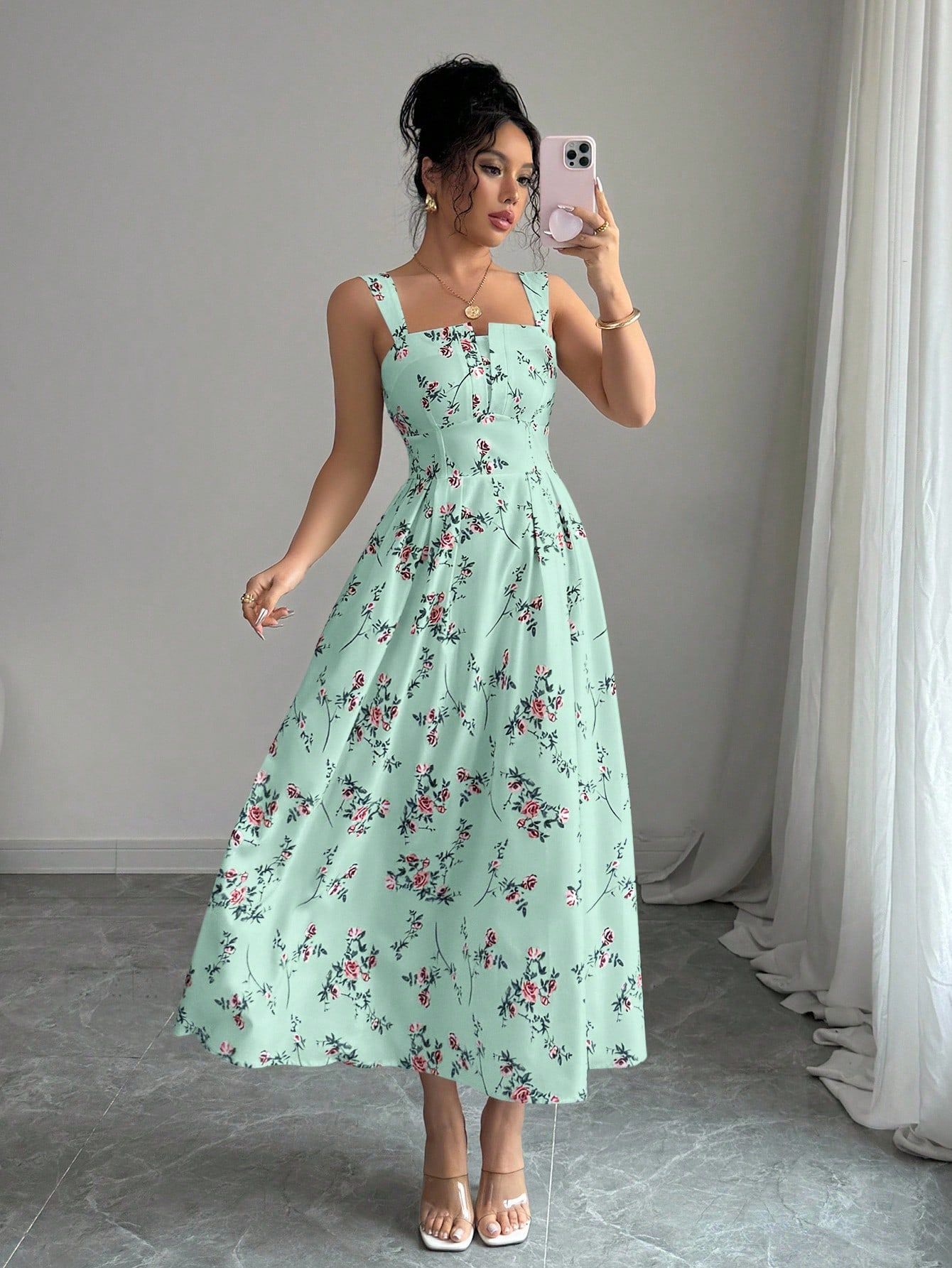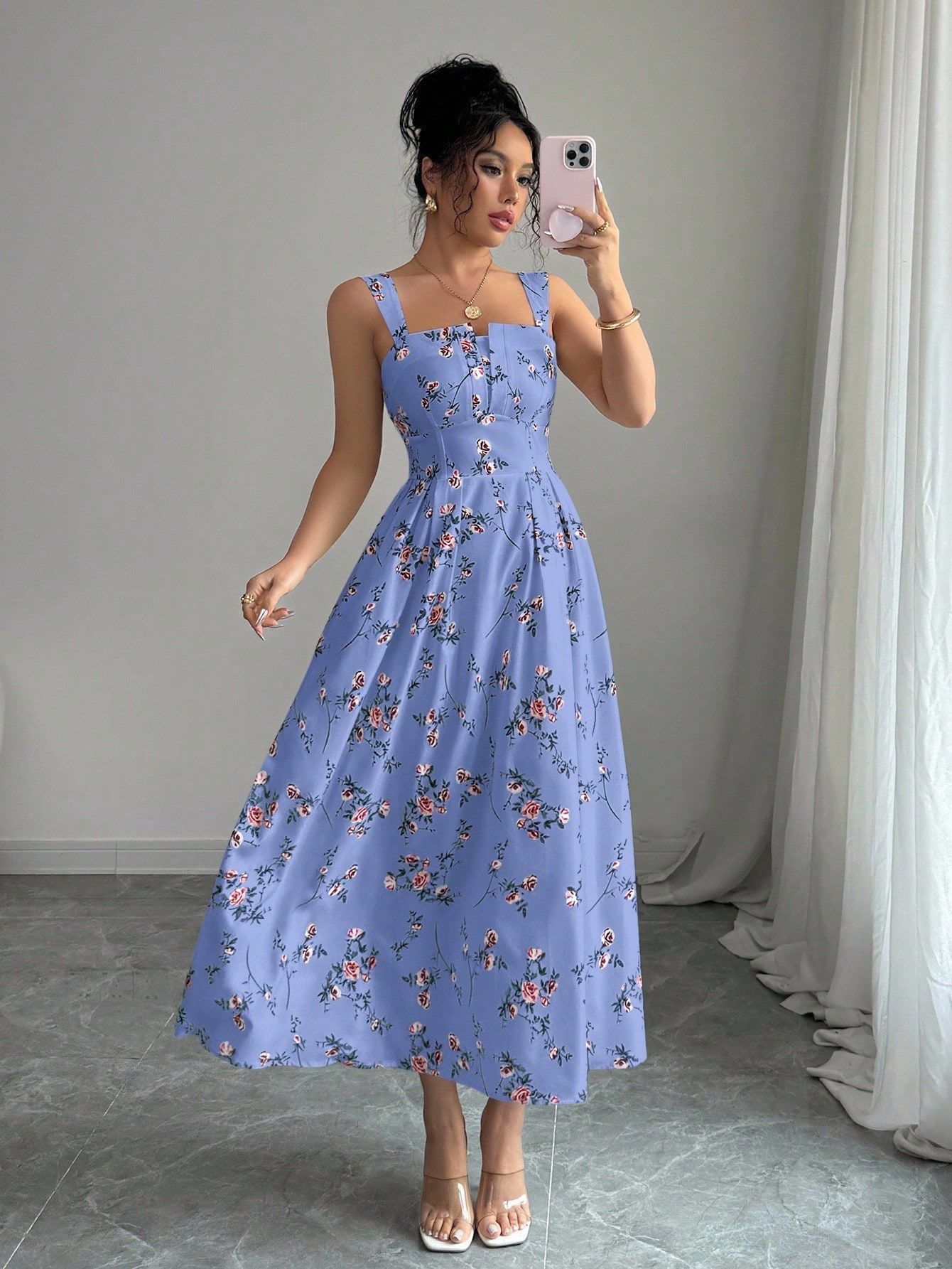 카운터 여름 패션 프렌치 백리스 서스펜더 드레스 여성 하이 엔드 라이트 럭셔리 중간 길이 스커트