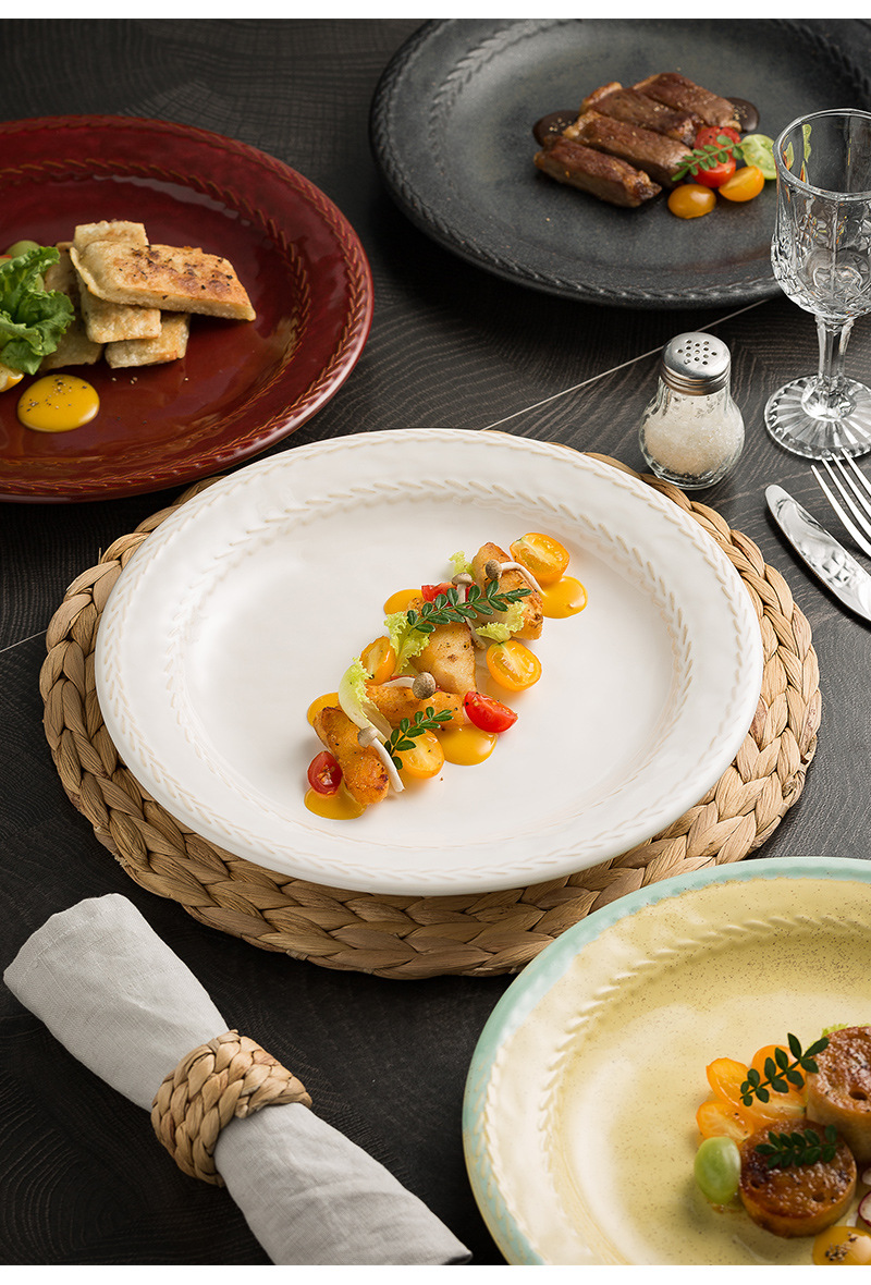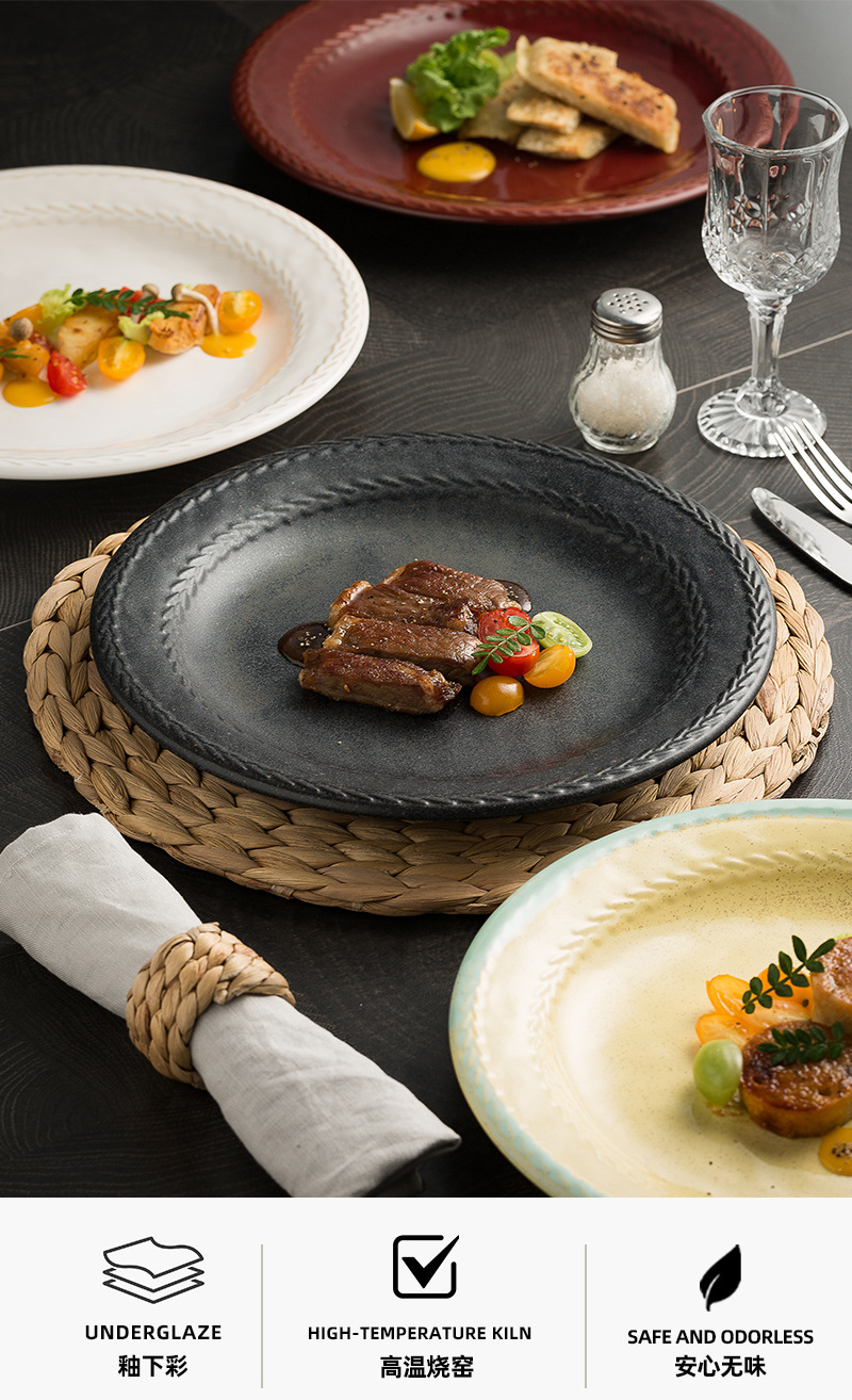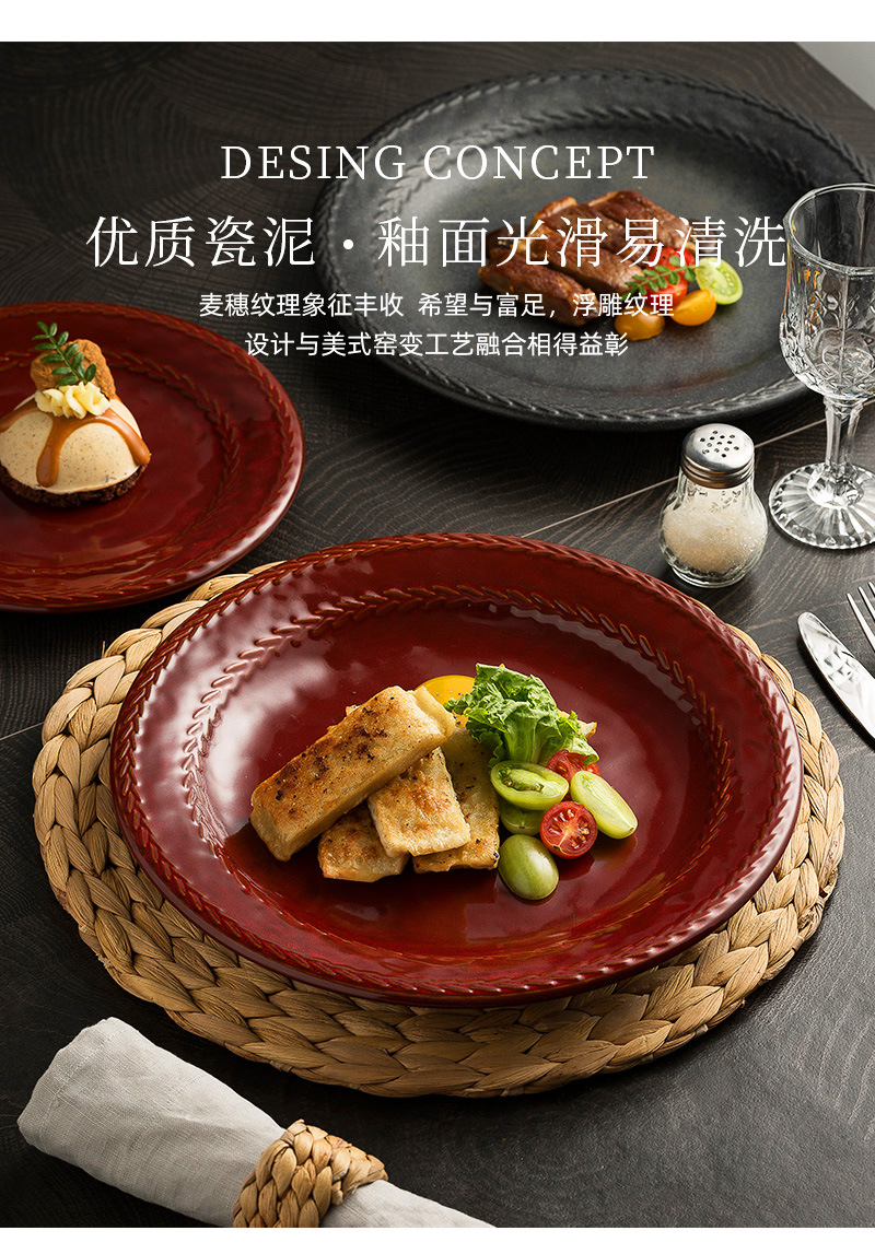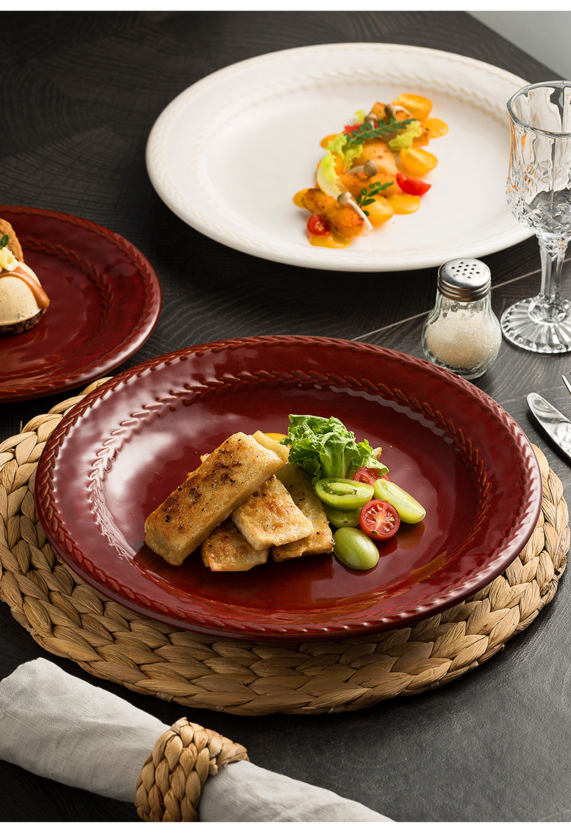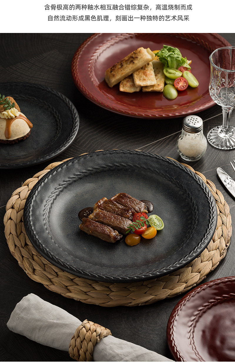 일본식 플랫 플레이트 레드 스테이크 디너 플레이트 고급 호텔 레스토랑 세라믹 서빙 플레이트 홈 레트로 언더글레이즈 컬러 플레이트