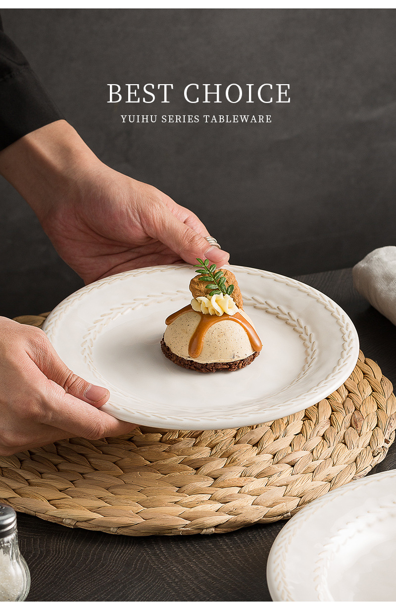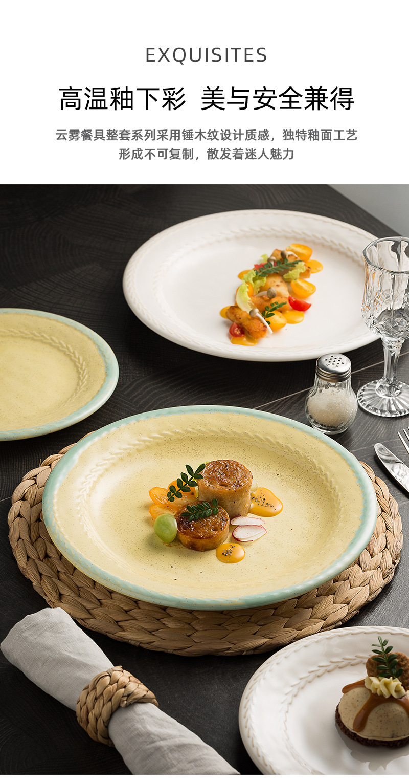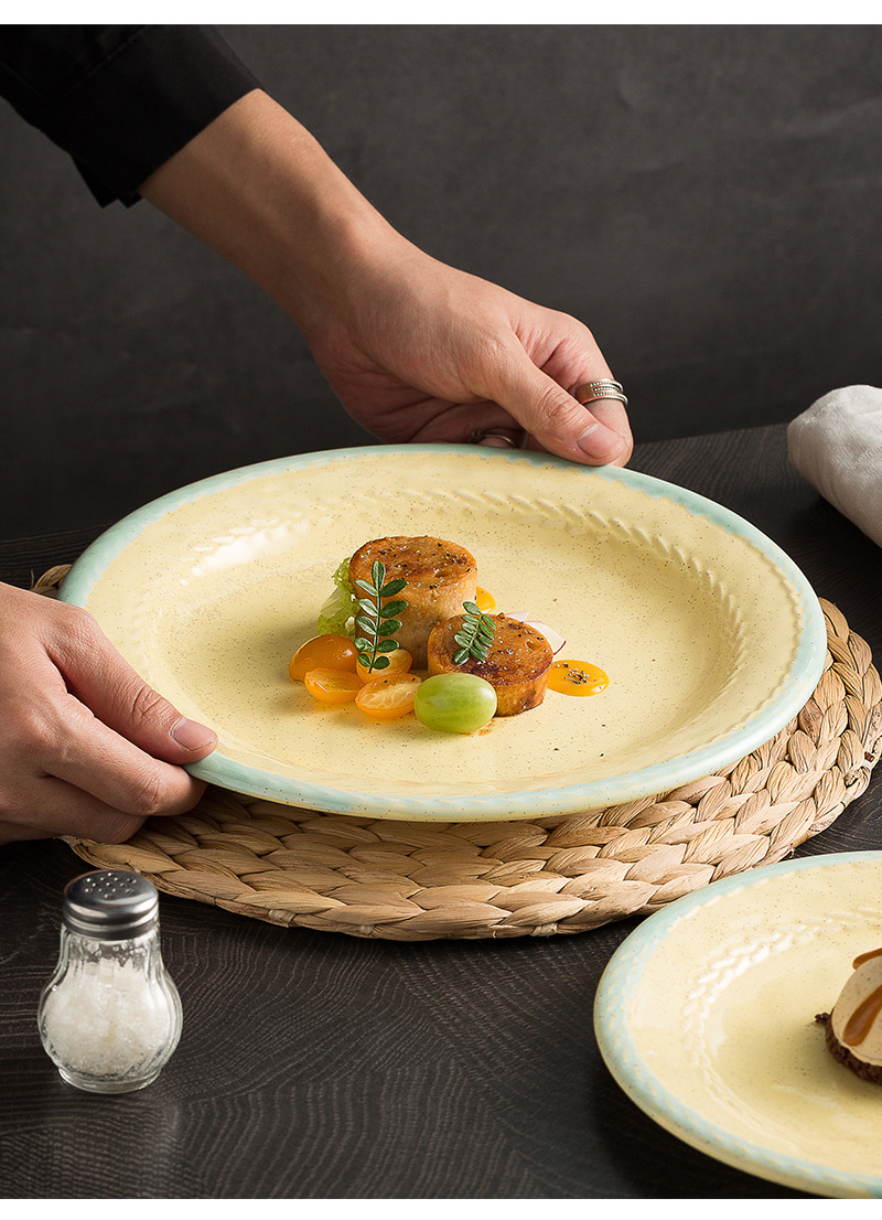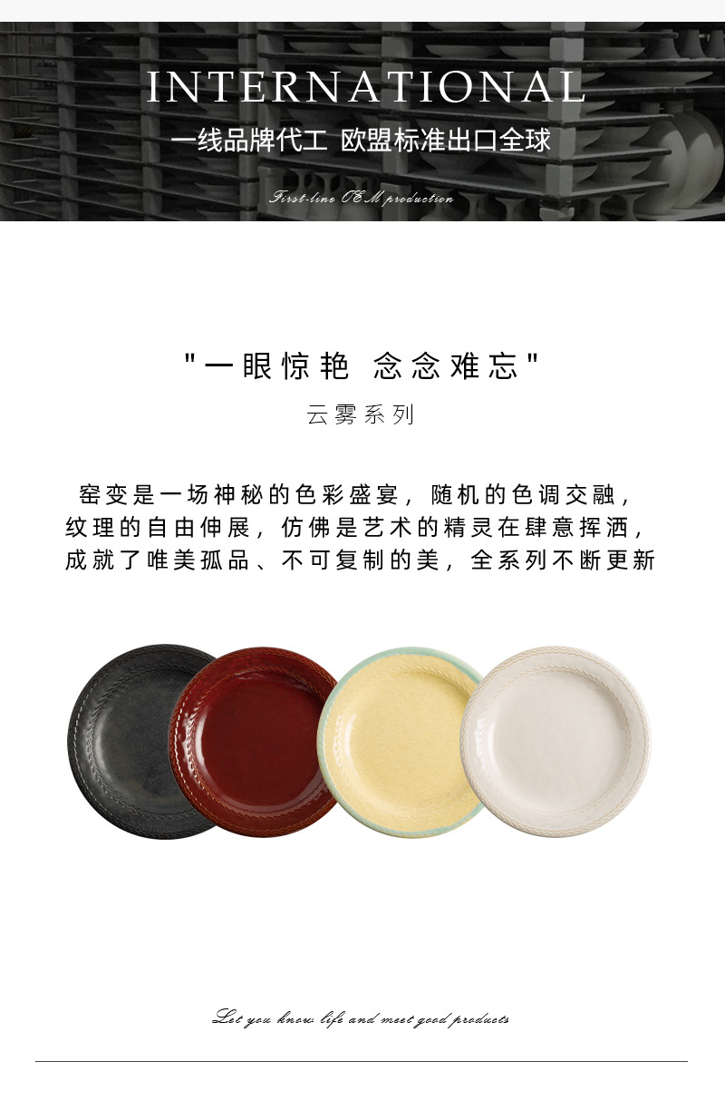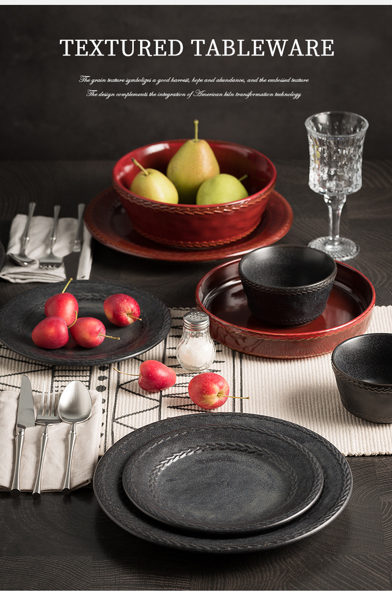 일본식 플랫 플레이트 레드 스테이크 디너 플레이트 고급 호텔 레스토랑 세라믹 서빙 플레이트 홈 레트로 언더글레이즈 컬러 플레이트