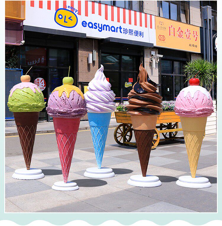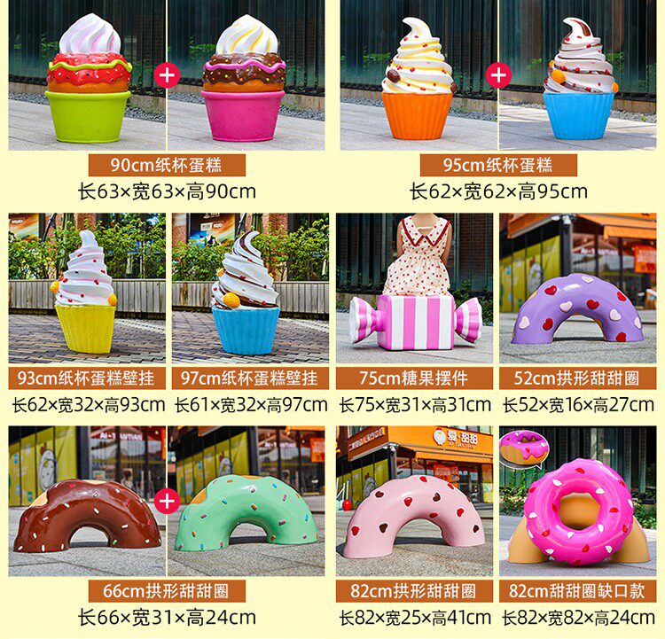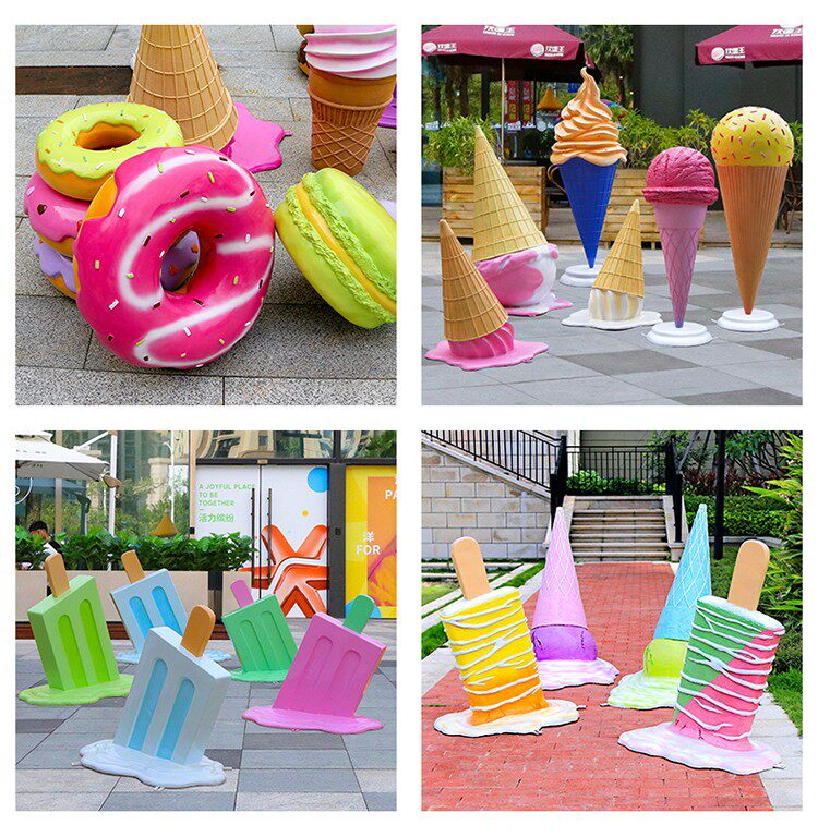 야외 디저트 밀크티 차가운 음료 가게 유리 섬유 조각 쇼핑몰 시뮬레이션 아이스크림 아이스크림 도넛 디스플레이 장식품
