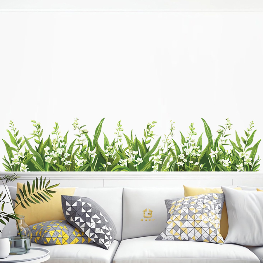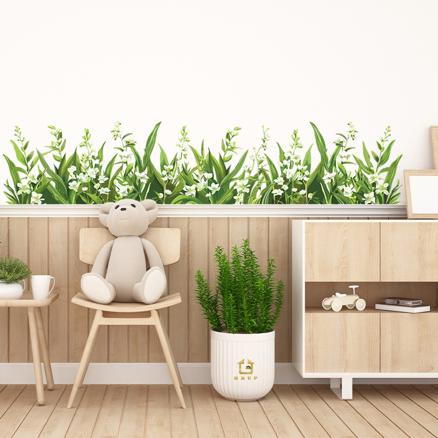 BR1324Q 작은 신선한 흰색 꽃 덤불 자체 접착 벽 스티커 베이스 보드 벽 코너 데스크탑 홈 장식 스티커스토어 가기