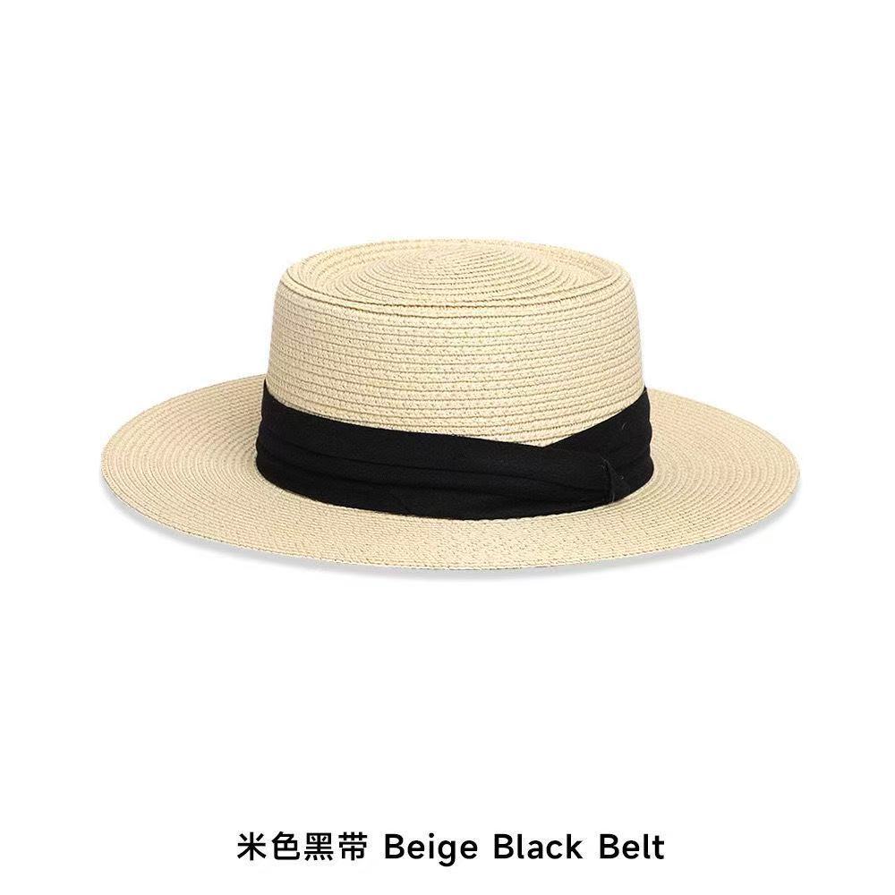 플랫 탑 밀짚 모자 여성 프랑스 밀짚 모자 2025 새로운 여름 큰 챙 태양 모자 해변 휴가 태양 모자