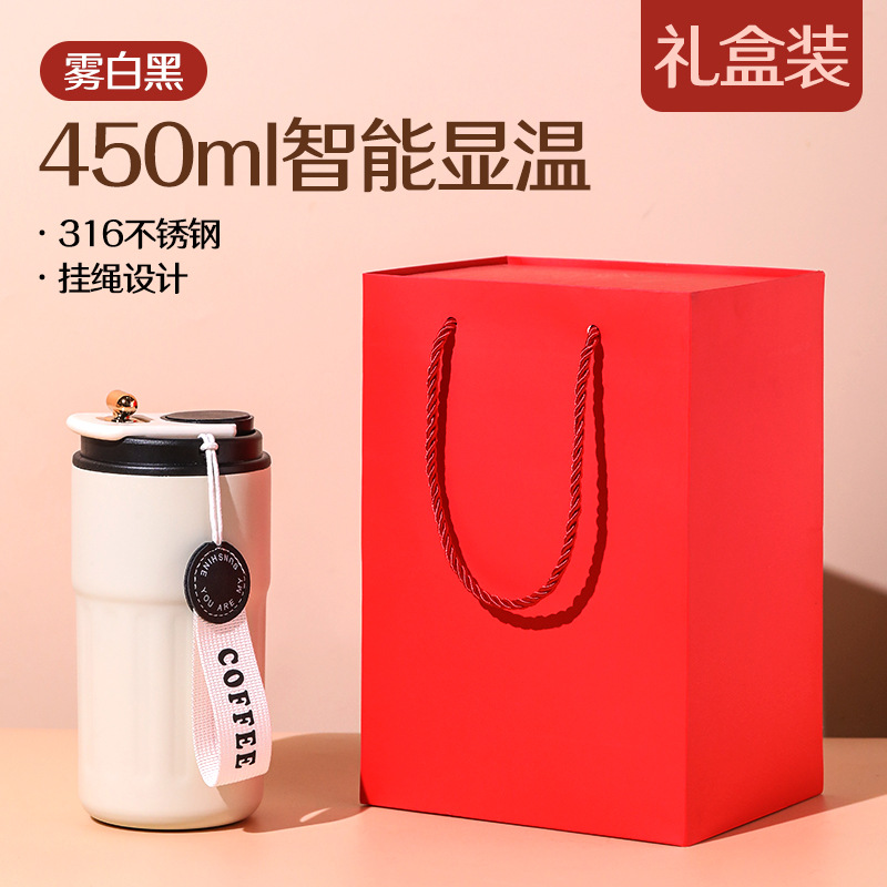 • [미스트 화이트 커피 + 선물 상자] 지능형 온도 표시 보온병 컵