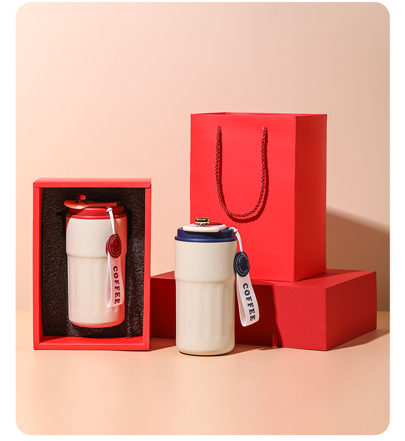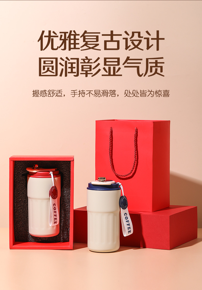• [미스트 화이트 레드 + 선물 상자] 지능형 온도 표시 보온병 컵