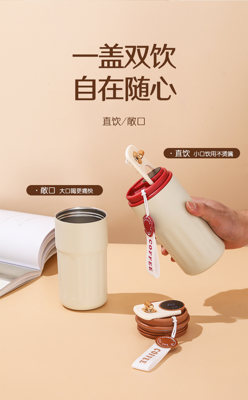 여아용 커피 보온병 컵, 보온 물컵, 고급스러운 휴대용 텀블러, 로고 프린트 컵, 디지털 디스플레이 보온병 컵스토어 가기