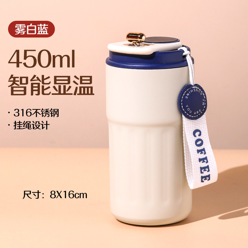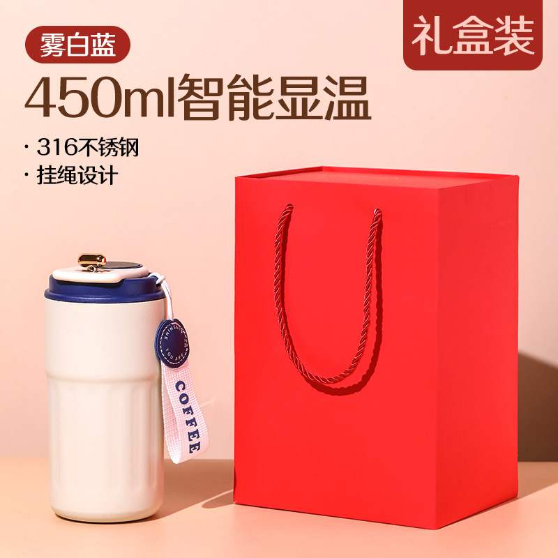 • [미스트 화이트 블루] 지능형 온도 표시 보온병 컵