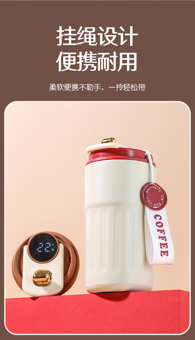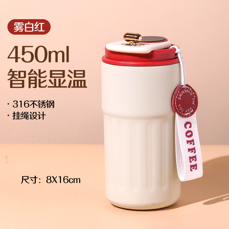 • [미스트 화이트 레드] 지능형 온도 표시 보온병 컵