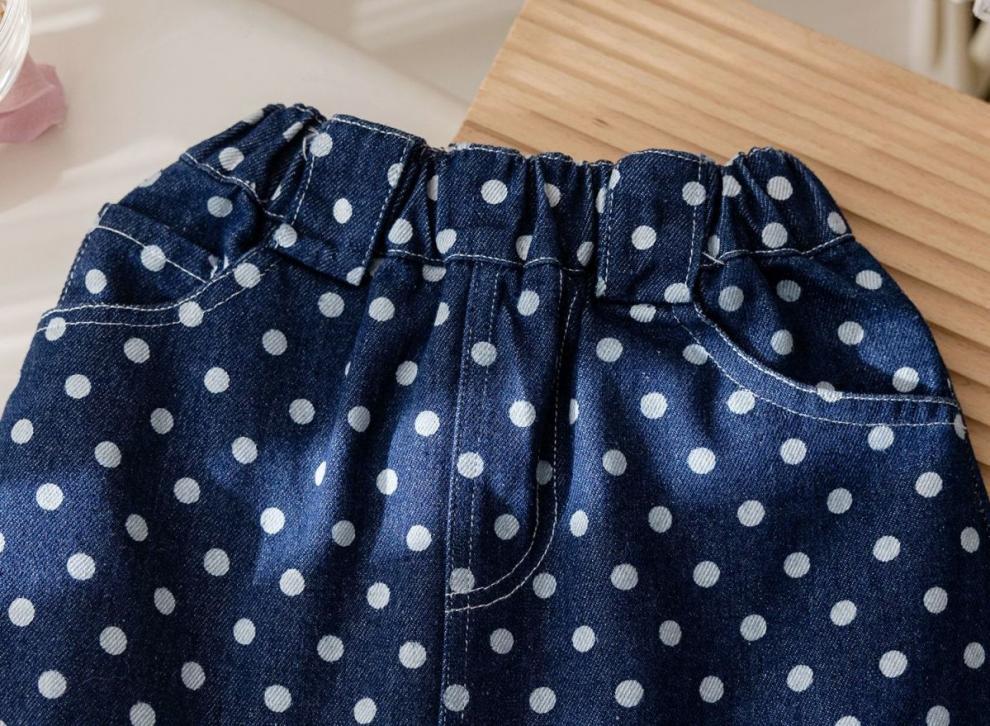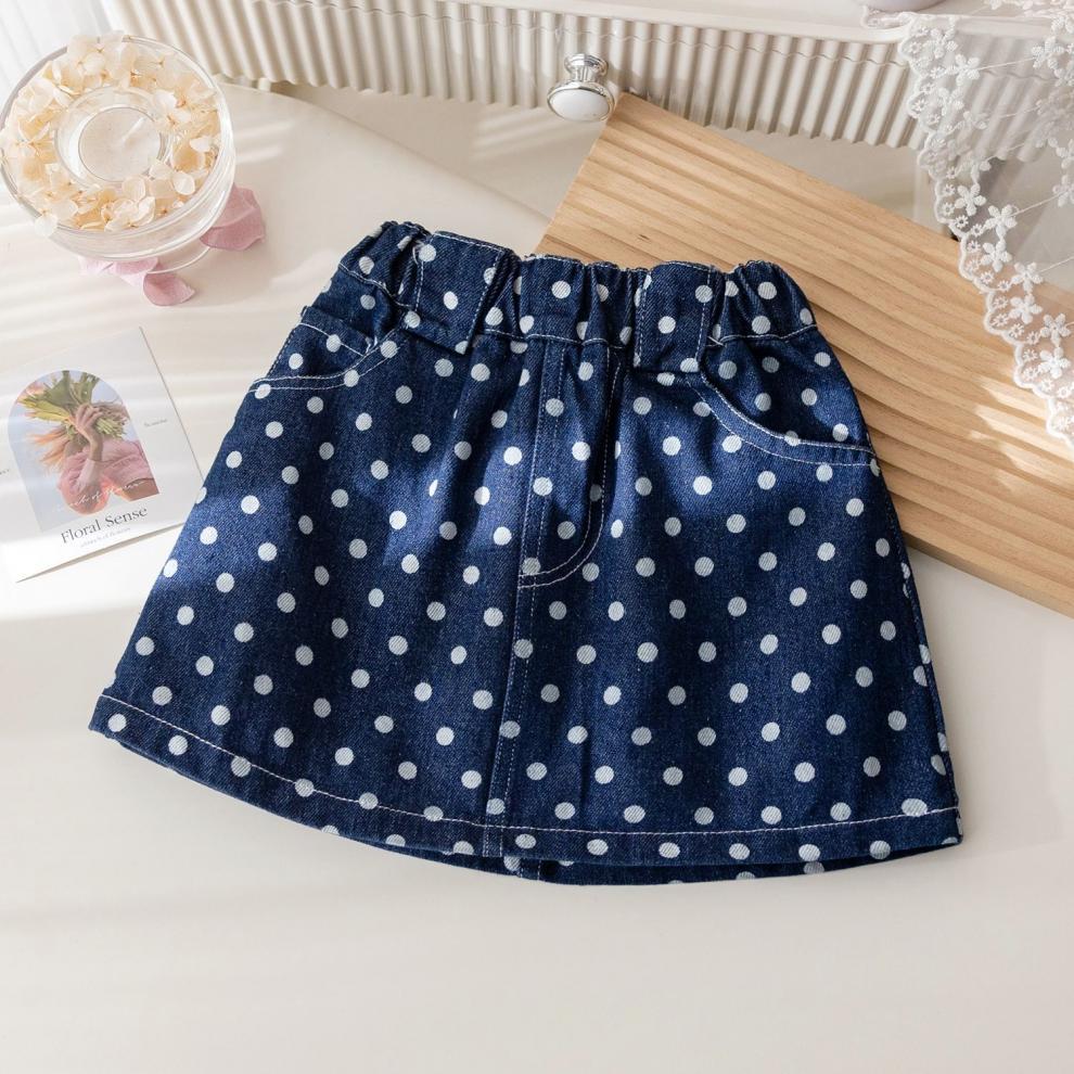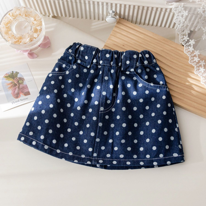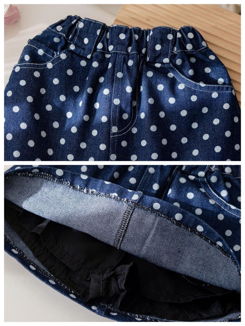 여자 여름 폴카 도트 체리 프린트 데님 스커트 아기 소녀 여름 한국 스타일 캐주얼 데님 스커트 스커트