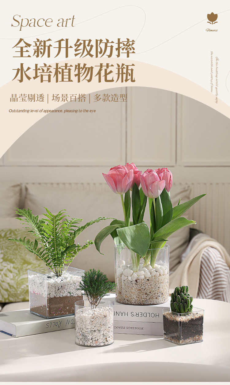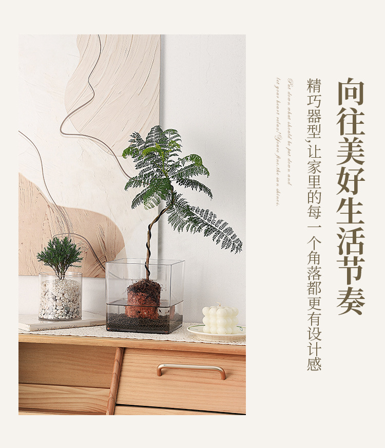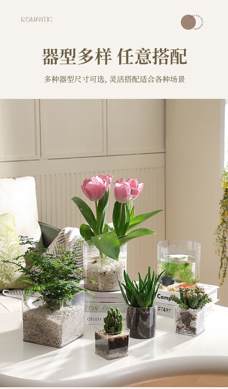 창의적인 투명 꽃병, 수경 재배 용기, 식물 데스크탑 용기, 아크릴 청록색 물 식물, 그라비아 사각형 탱크스토어 가기