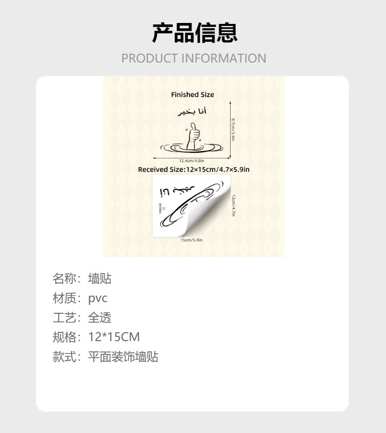BR3988C 아랍어 "I'm Fine" 엄지 손가락 간단한 자체 접착 방 스티커 홈 뷰티 데코레이션 스티커