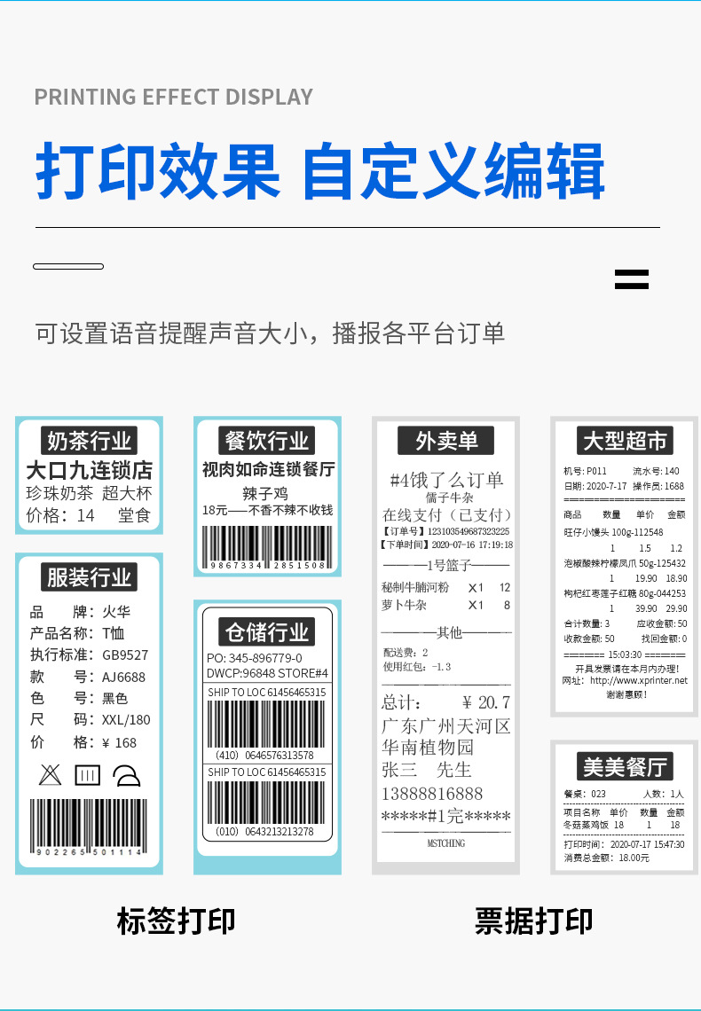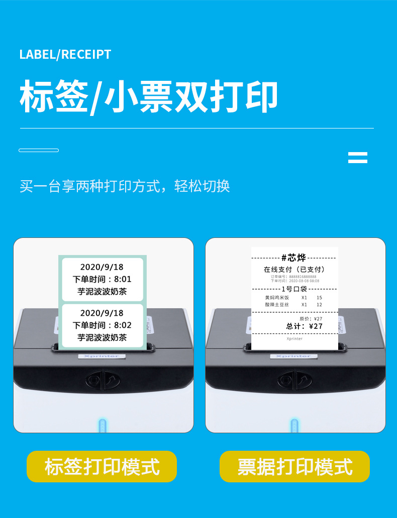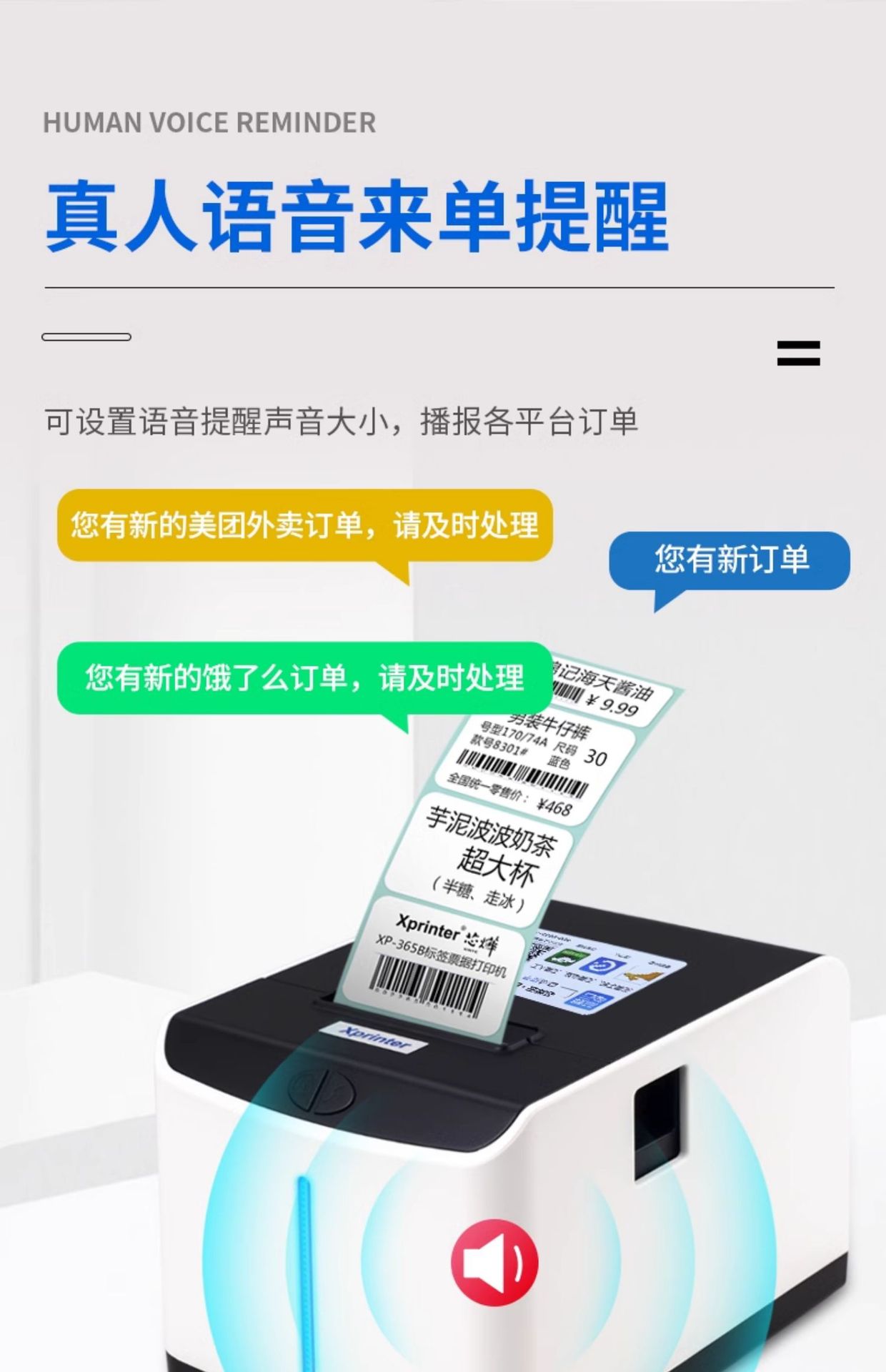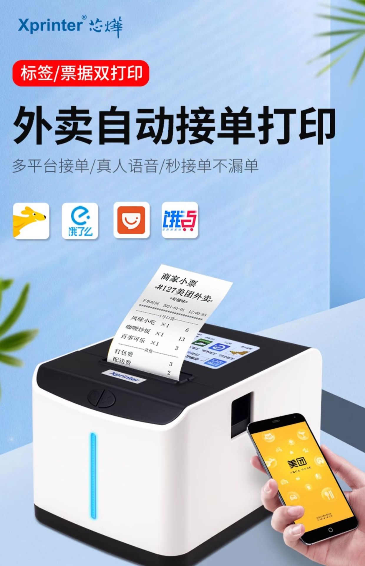 Xinye XP-T271U 테이크아웃 라벨 프린터 WiFi Meituan JD Ele.me 열 자체 접착 바코드 기계