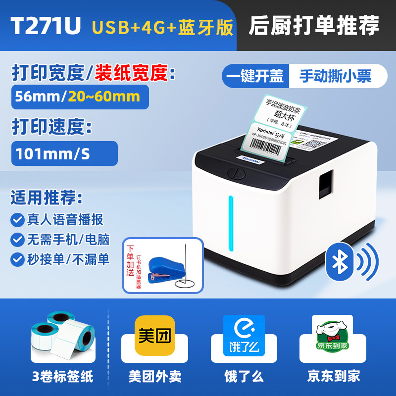 Xinye XP-T271U 테이크아웃 라벨 프린터 WiFi Meituan JD Ele.me 열 자체 접착 바코드 기계스토어 가기