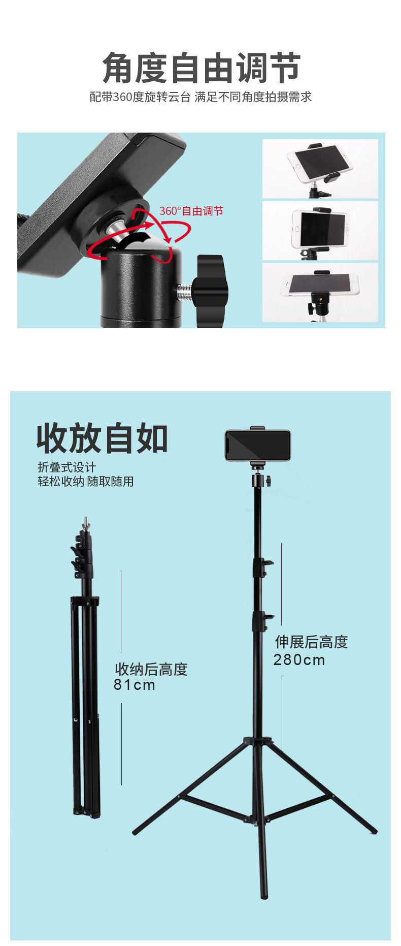 2.8m 사진 에어 쿠션 라이트 스탠드 플래시 필 라이트 휴대 전화 휴대용 스탠드 접이식 텔레스코픽 삼각대 라이트 스탠드스토어 가기