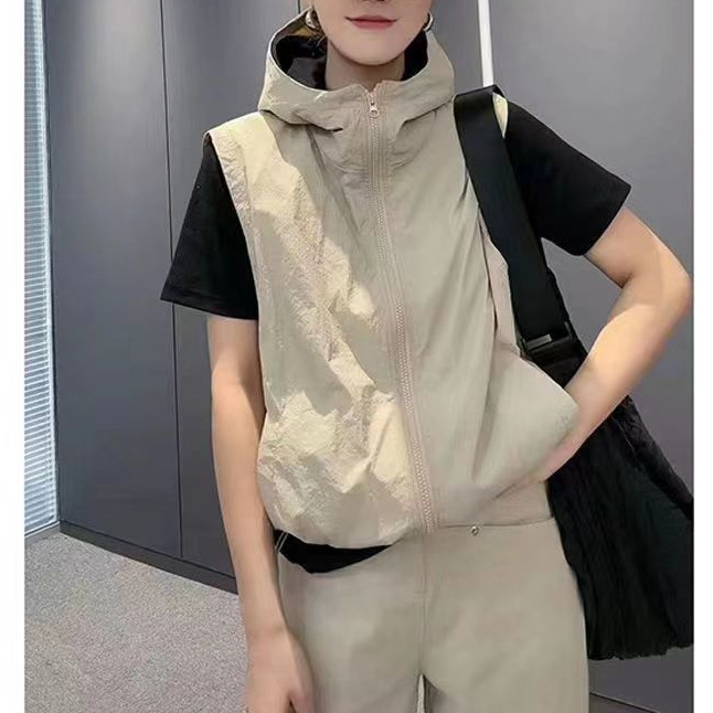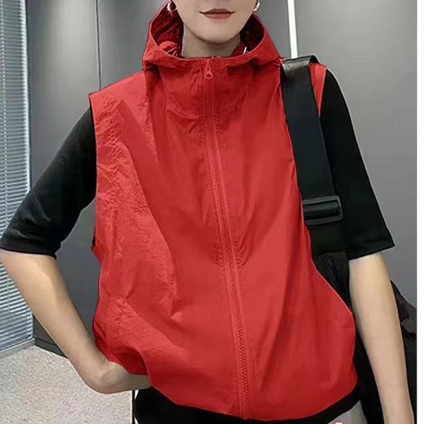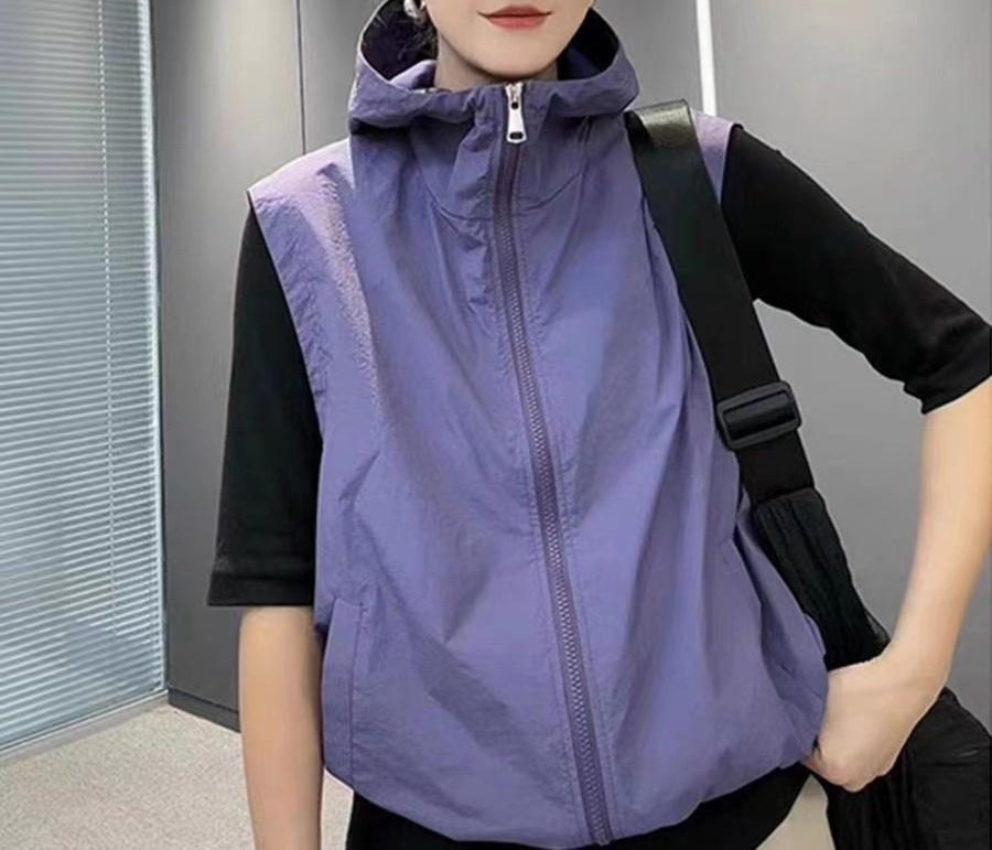 2025 새로운 봄, 가을 얇은 단일 레이어 태양 보호 의류 조끼 여성 느슨한 겉옷 후드 통기성 조끼 자켓 보라색