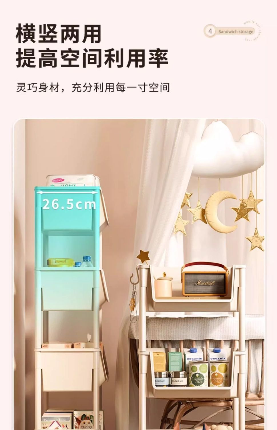 바퀴가 달린 바닥, 다층 대용량 수납 선반, 스낵 수납 선반, 이동식 트롤리, 거실 장난감 수납 선반