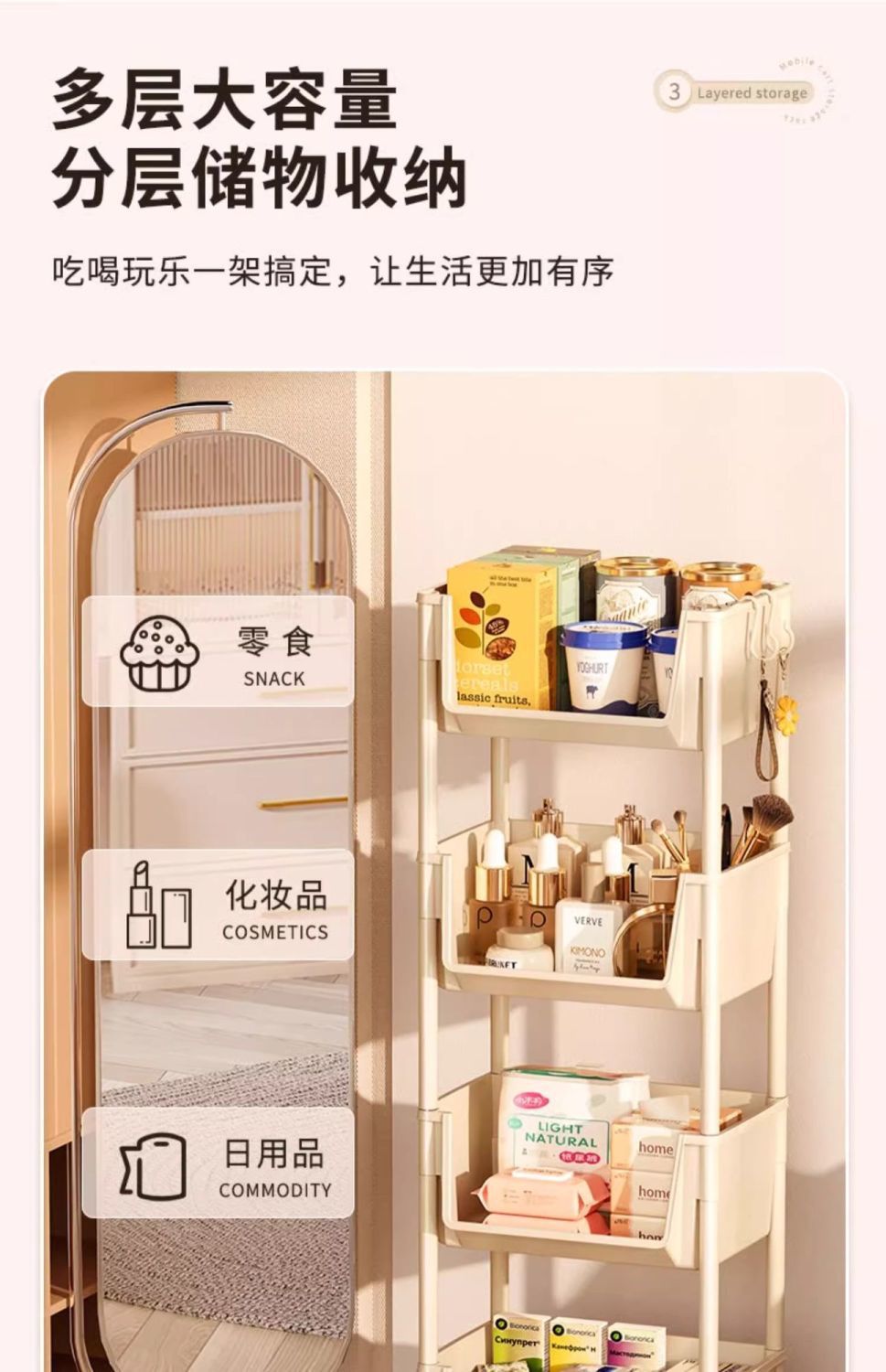 바퀴가 달린 바닥, 다층 대용량 수납 선반, 스낵 수납 선반, 이동식 트롤리, 거실 장난감 수납 선반스토어 가기