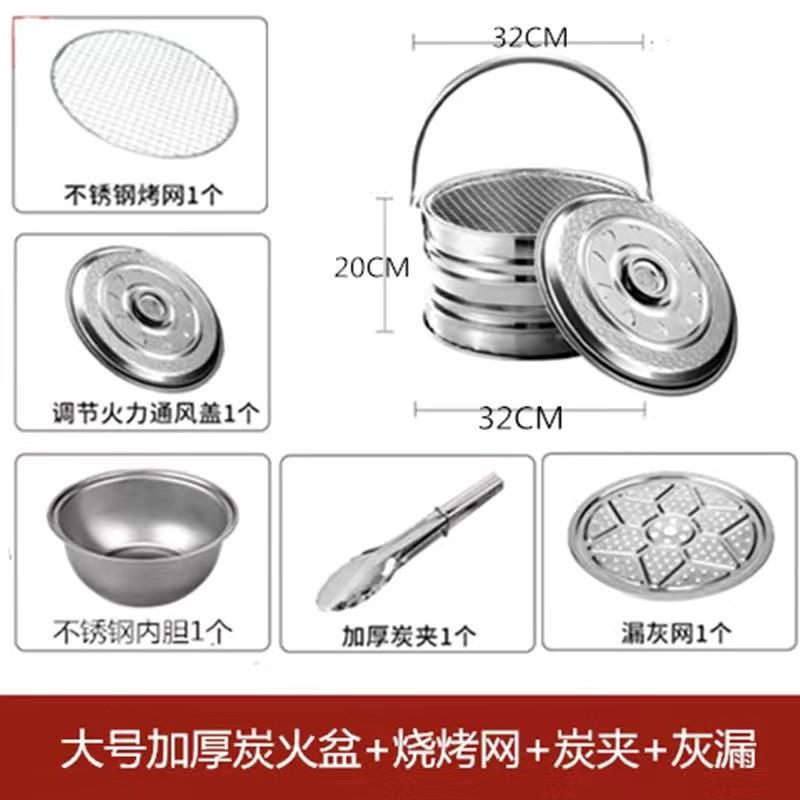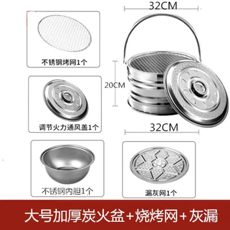 • 특대 숯불 난로 + 그릴망 + 재 배수구