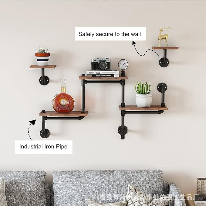 미국식 수도관 철제 원목 벽걸이 선반은 자유롭게 조합할 수 있습니다. 일자형 선반 수납 선반 산업용 스타일 벽 장식 선반